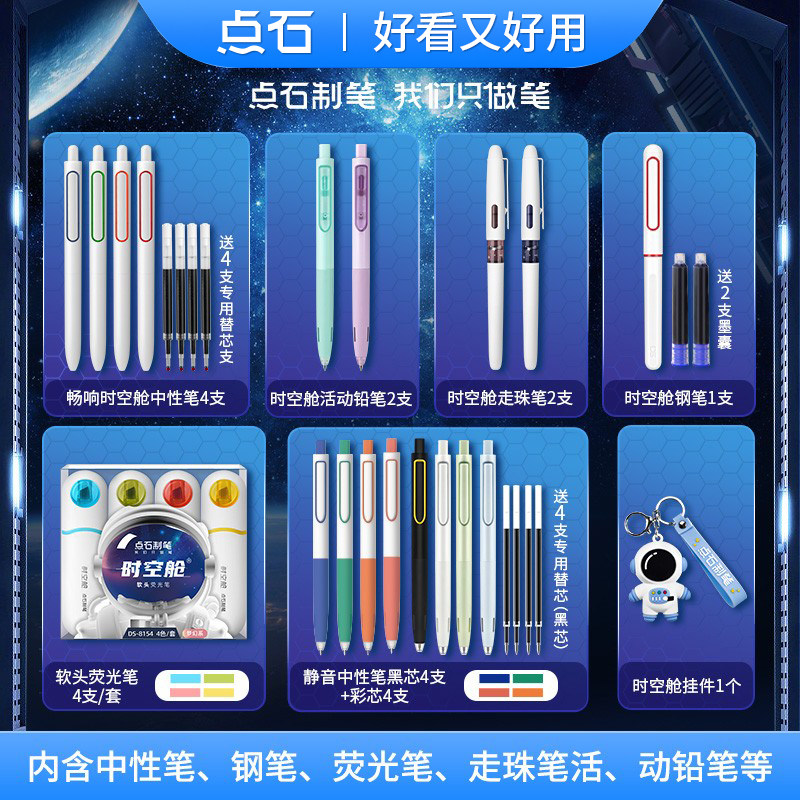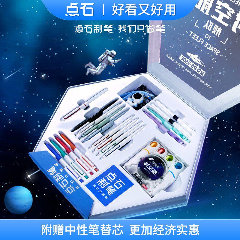 📚 点石时空舱舰队350E按动中性笔文具礼盒静音荧光笔速干六人组太空舱送礼品生日伴手礼学生套装高颜值黑科技笔