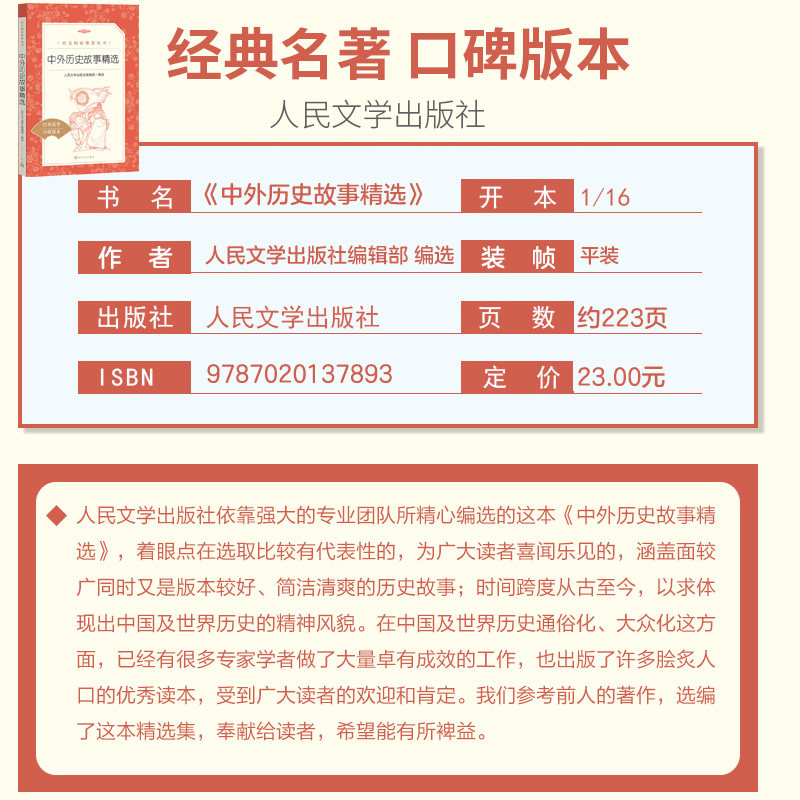 57¥ HU071 eWmqUMFRACF¥ https://m.tb.cn/h.7CtikPh 中外历史故事精选 小学生四年级三五六年级读必课外阅读书籍 老师荐推故事读物课外书 经典儿童文学畅销书目 正版 人民文学出版社 --------------------- 【原售价】29.8元 【现售价】19.8元。
