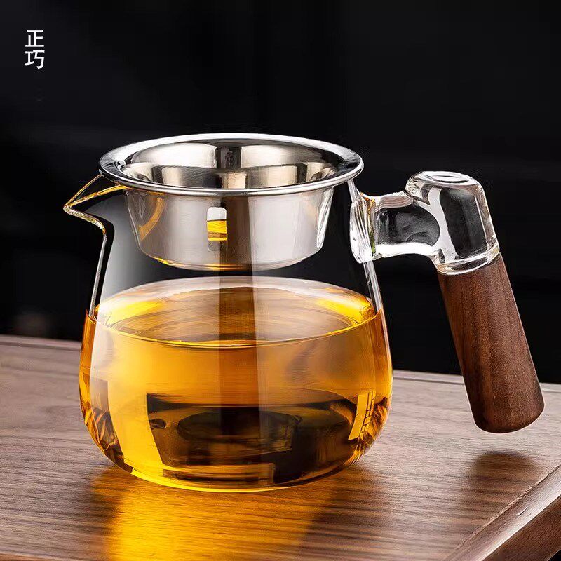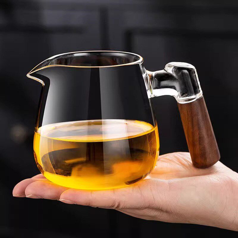 📚 加厚玻璃公道杯胡桃木把茶海分茶器茶漏茶具配件高档耐热公杯卡网