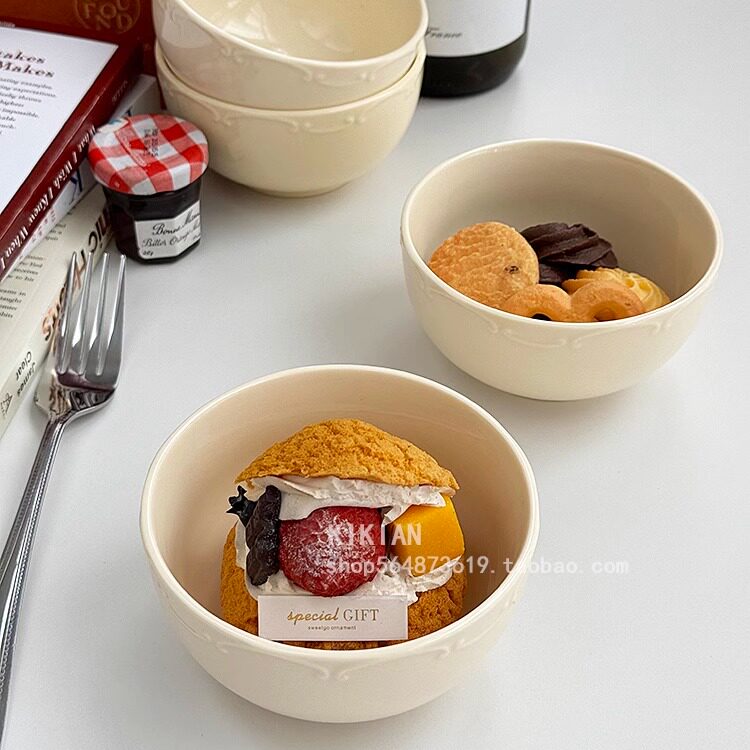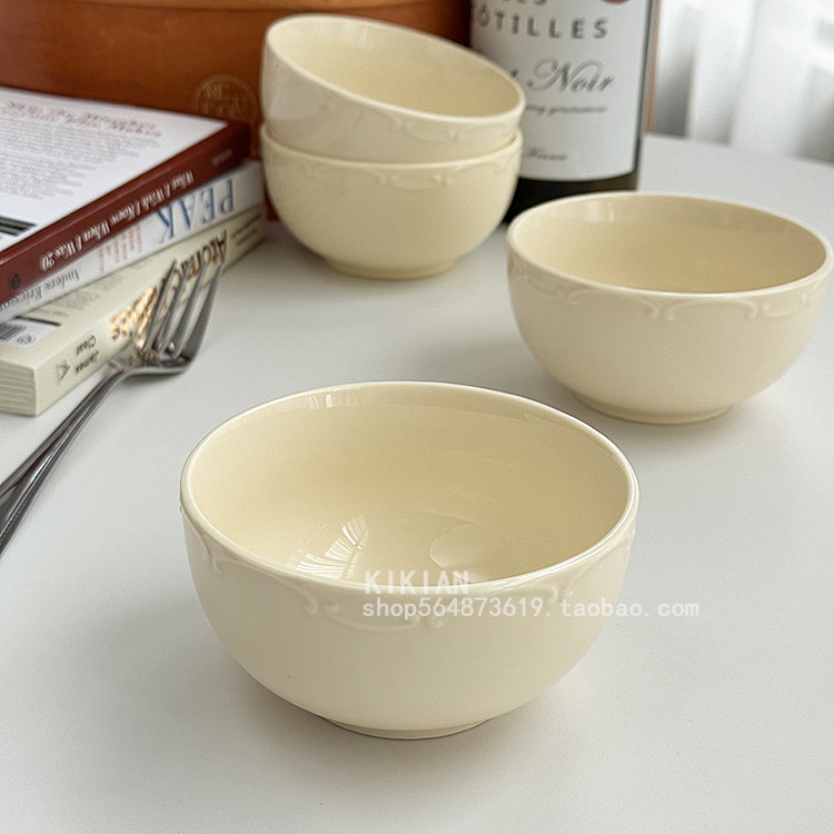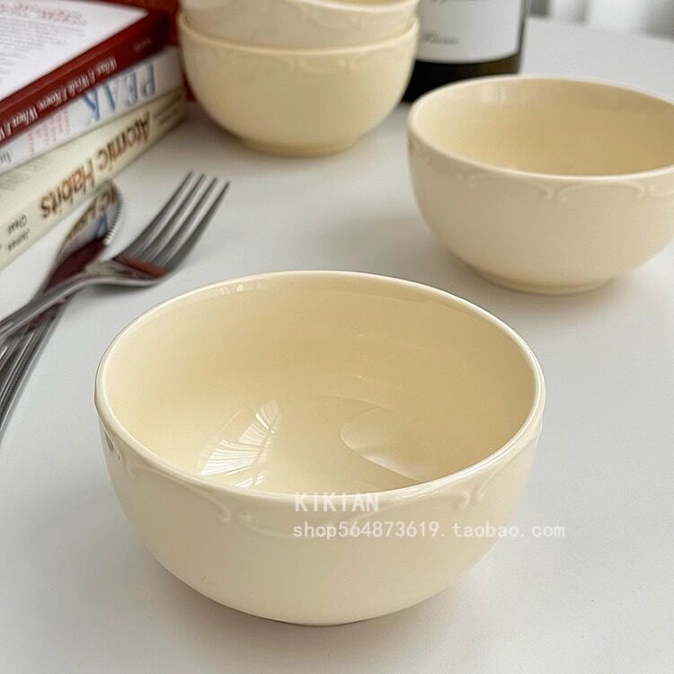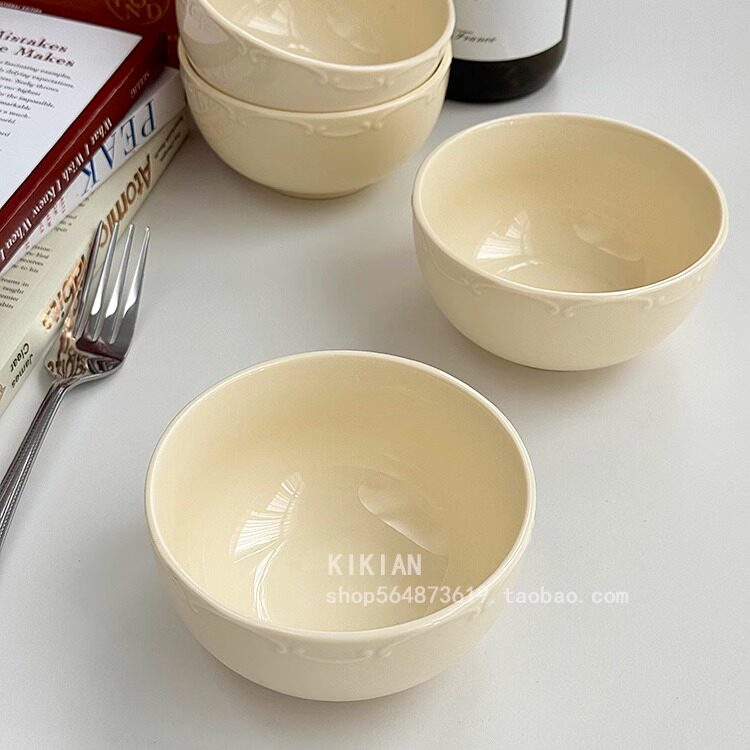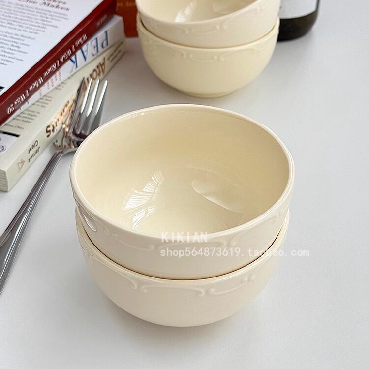 📚 其其安高颜值家用小碗ins奶油风浮雕米饭碗高级感乔迁新居餐具