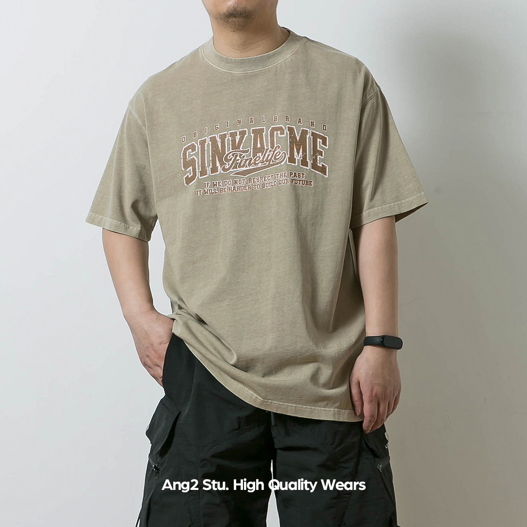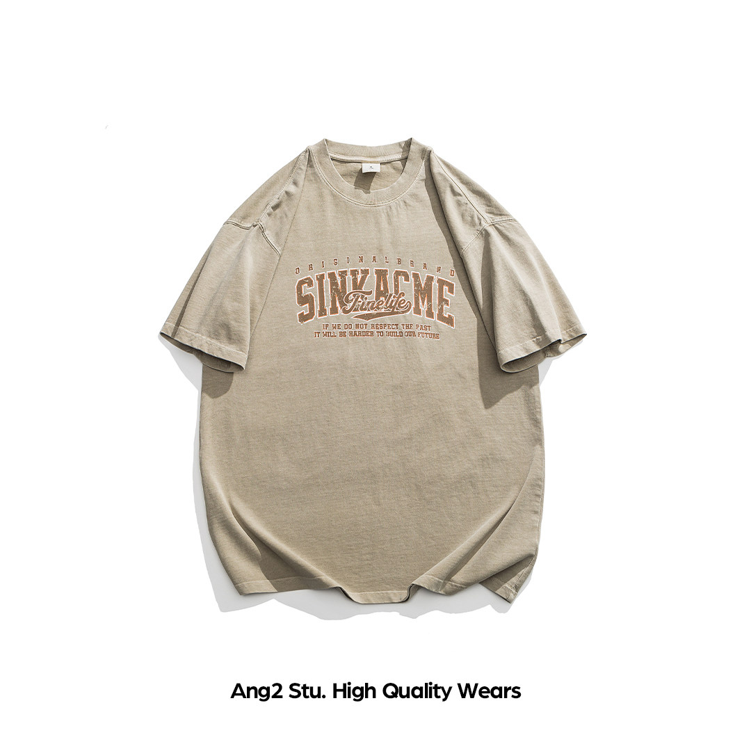 📚 Ang2 Stu 水洗质感 日系复古男式做旧印花纯棉宽松圆领短袖T恤Tee