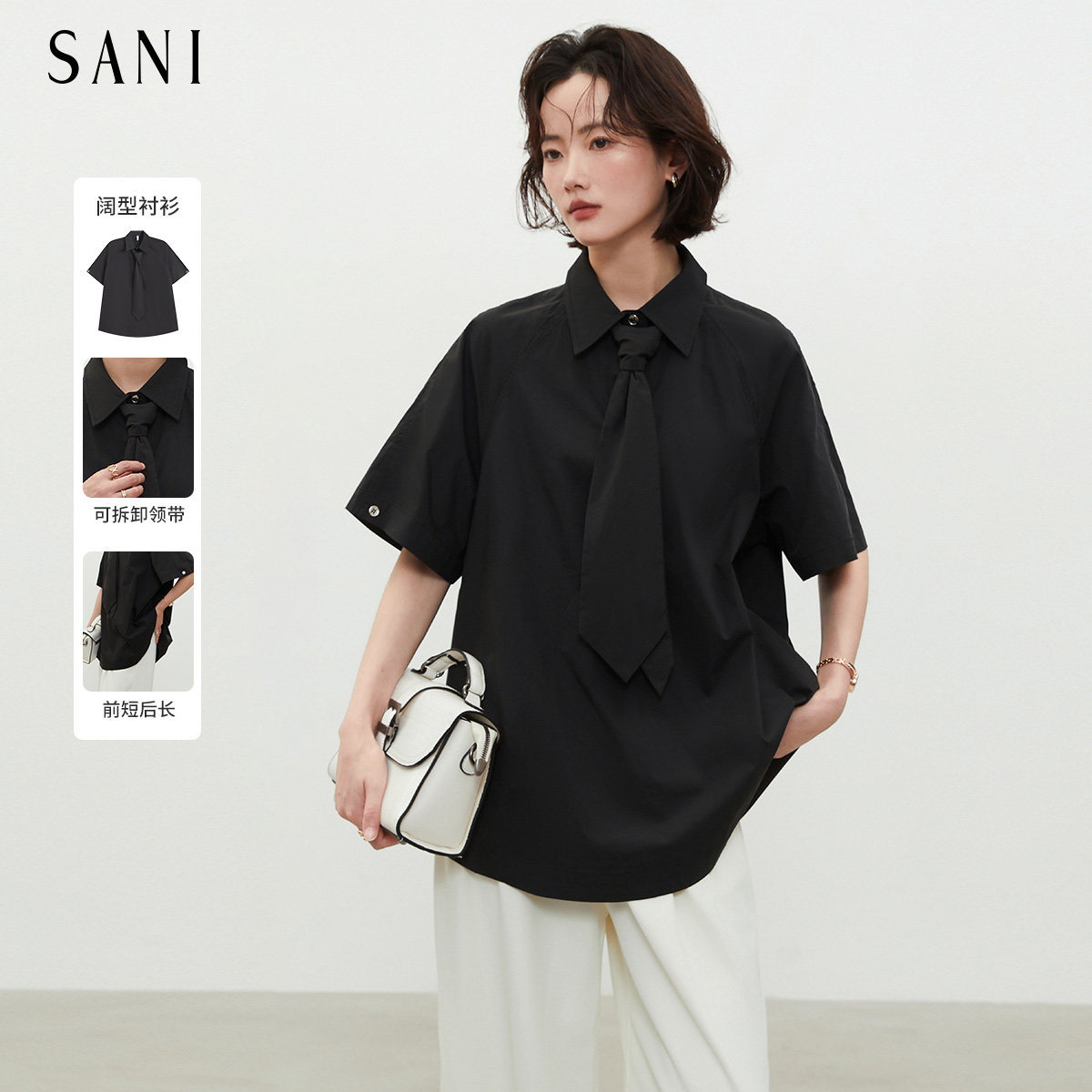 📚 SANI奥莱反季清仓特卖气质女衬衫26春高级感通勤中袖上衣配领带