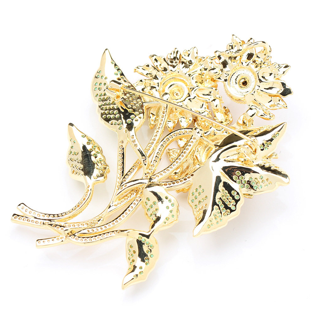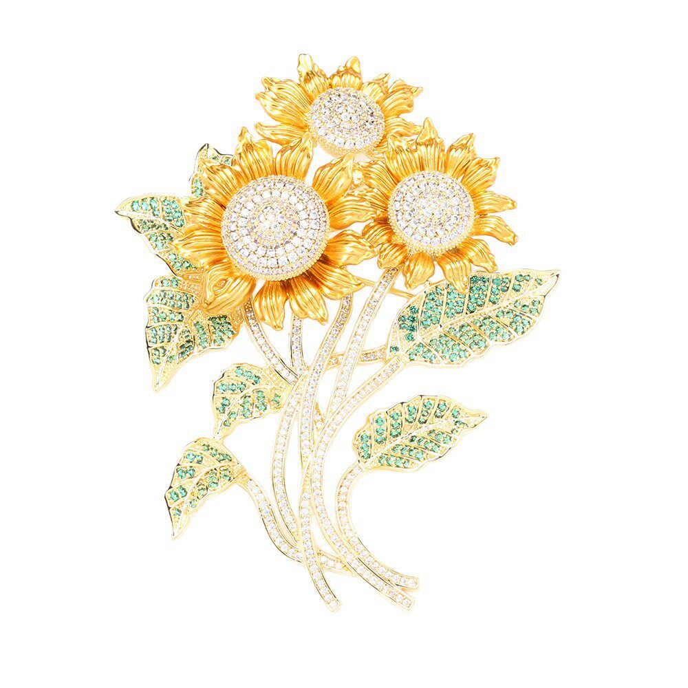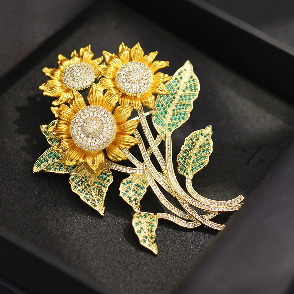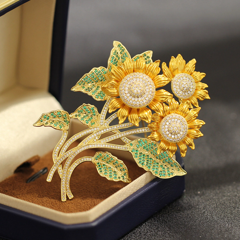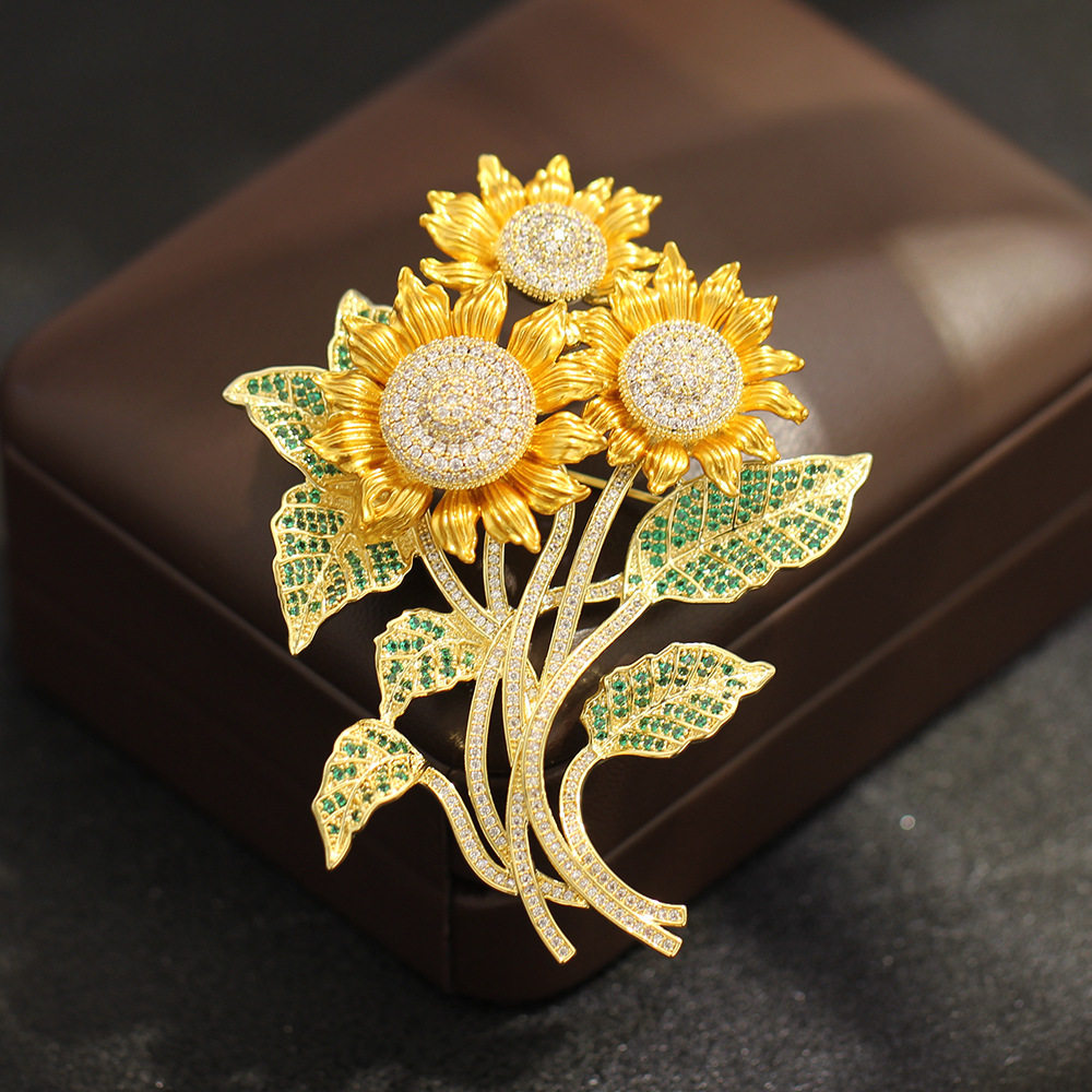 📚 重工奢华满镶锆石金色向日葵胸针大气夸张向阳花别针花束配饰胸花