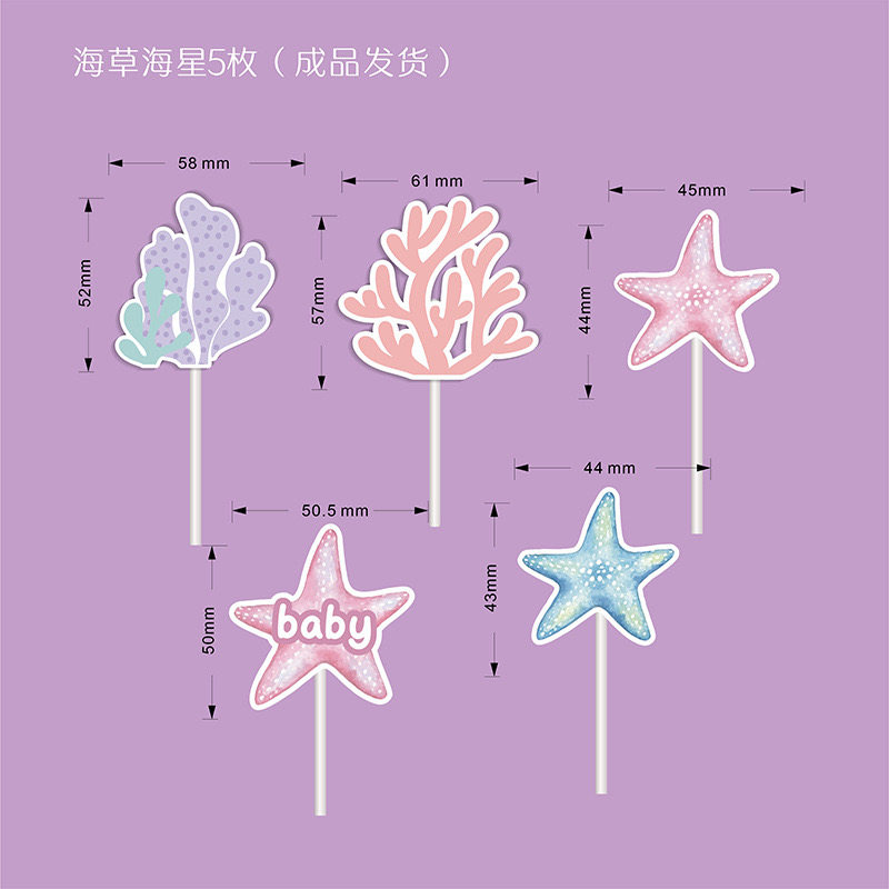 📚 美人鱼主题派对装饰插件人鱼生日甜品台装饰棒棒糖推推乐插牌插件