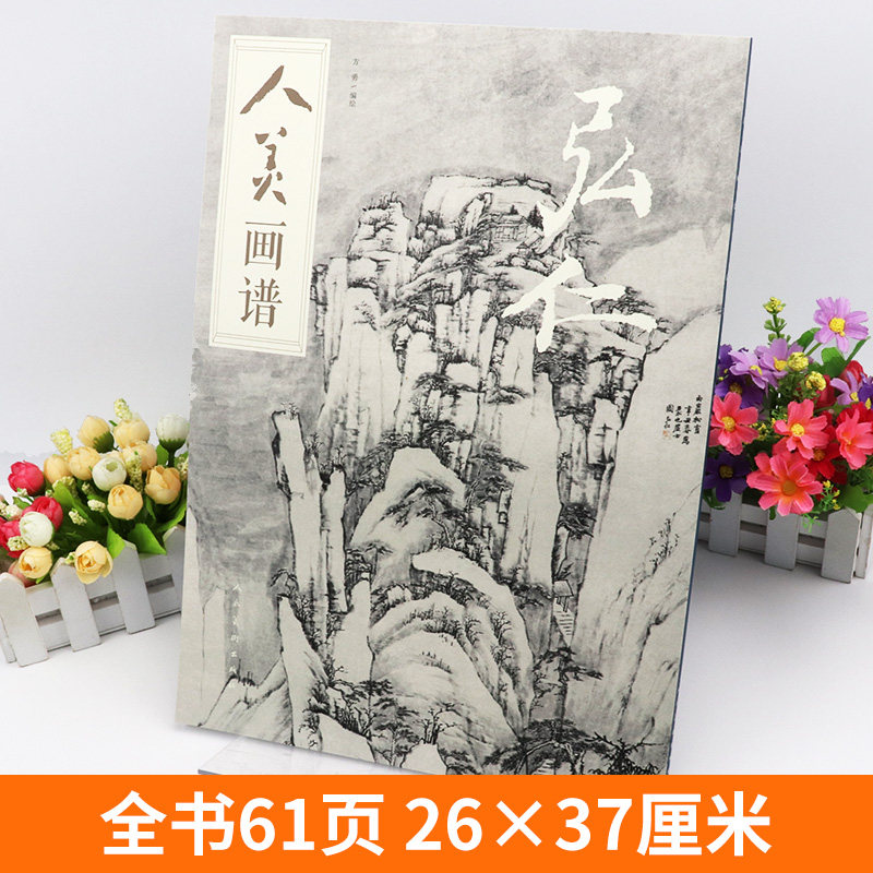 📚 【赠教学视频】人美画谱 弘仁 高清大开本松溪石壁图国画山水花鸟画入门 国画临摹底稿范本中国画技法 弘仁画集弘仁孟山水画集画册