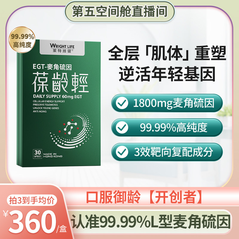 📚 第五空间舱】莱特维健葆龄轻99.99%L麦角硫因官方旗舰店 胡兵同款