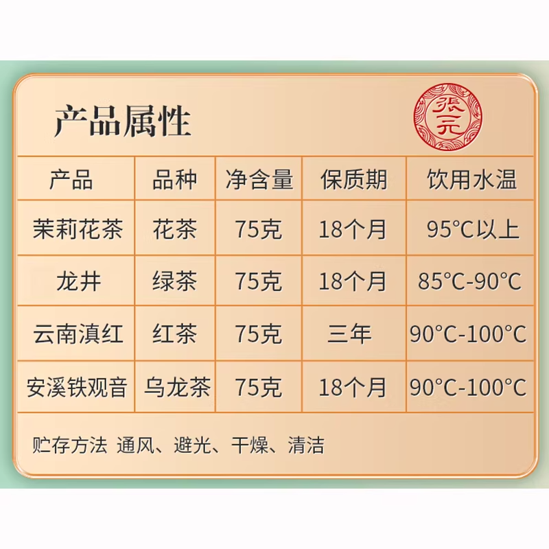 📚 张一元茶叶四大茗茶五福礼盒红茶龙井铁观音中国风礼盒