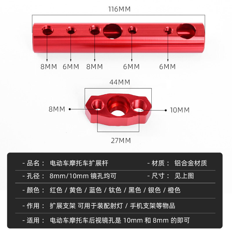 📚 电动车摩托车多功能扩展支架通用射灯横杆改装后专用镜座手机支架