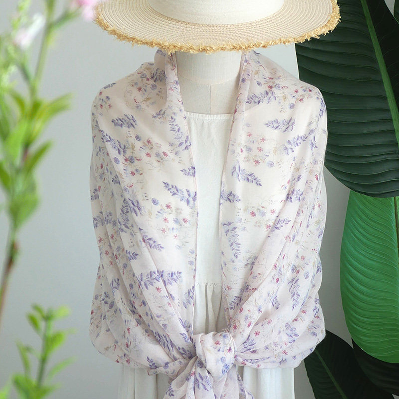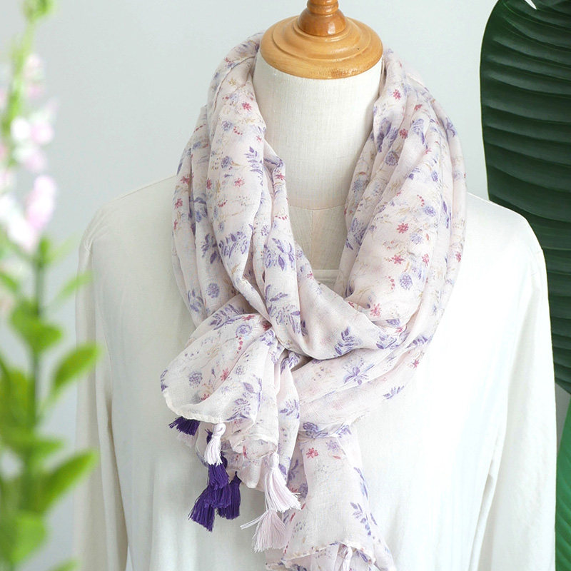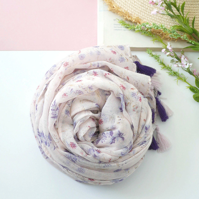 📚 小野花的交谈 甜美小清新棉麻围巾女 温柔淡粉森系碎花春夏薄披肩