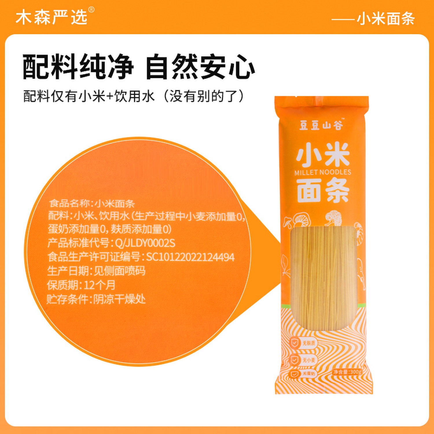 📚 木森严选无麸质纯小米面条无小麦防面粉过免敏低脂无加碘挂面早餐
