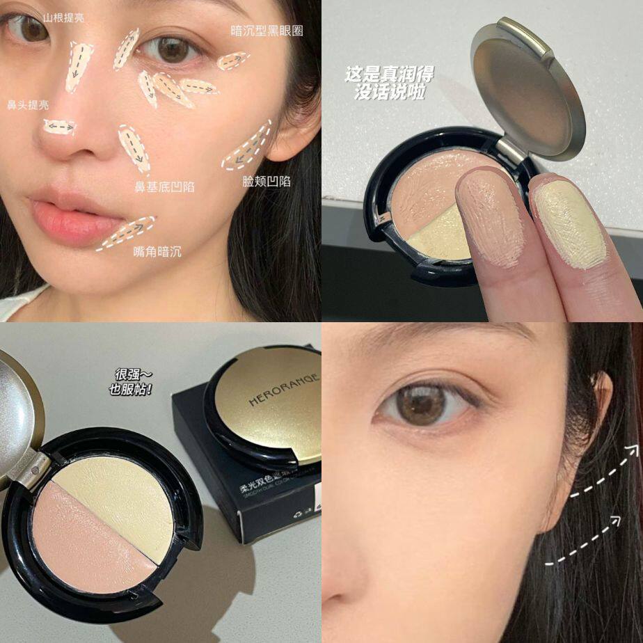 📚 平整面部凹陷的神!提亮双色遮瑕膏滋润泪沟黑眼圈痘印膨胀遮瑕膏