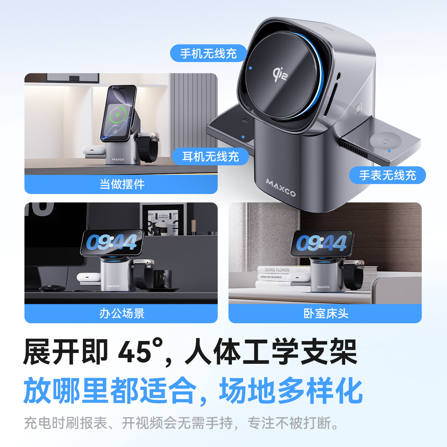 📚 美能格三合一磁吸桌面无线充电器Qi2快充适用苹果iphone全家桶手表iwatch耳机手机17pro多功能充电坞底座支架