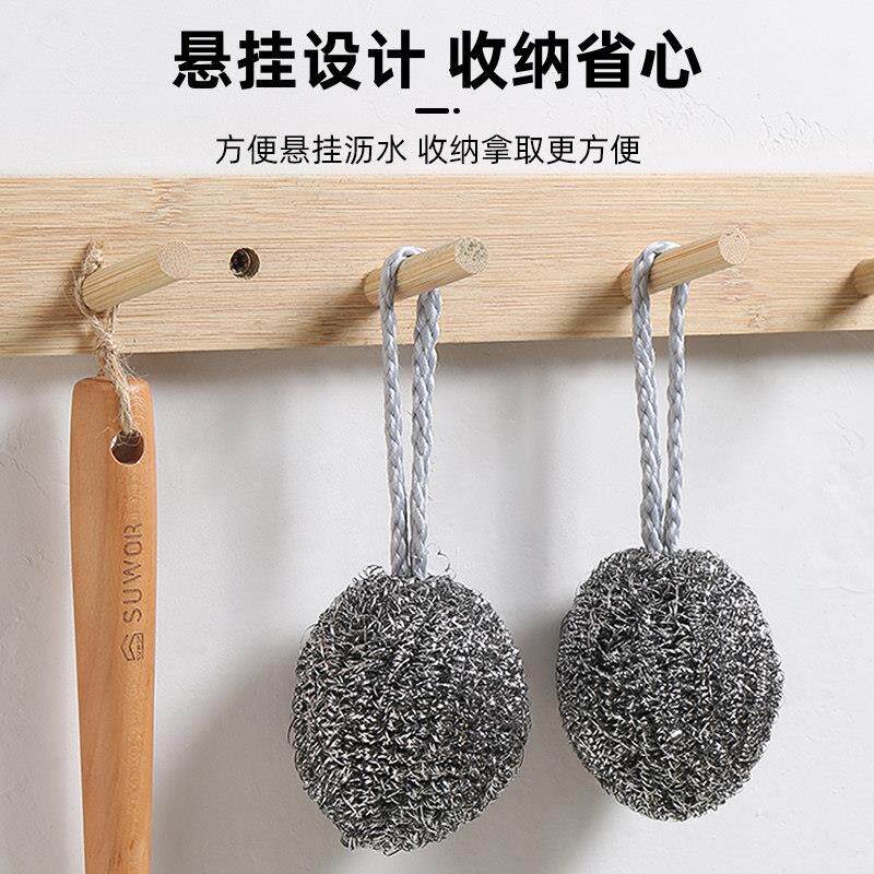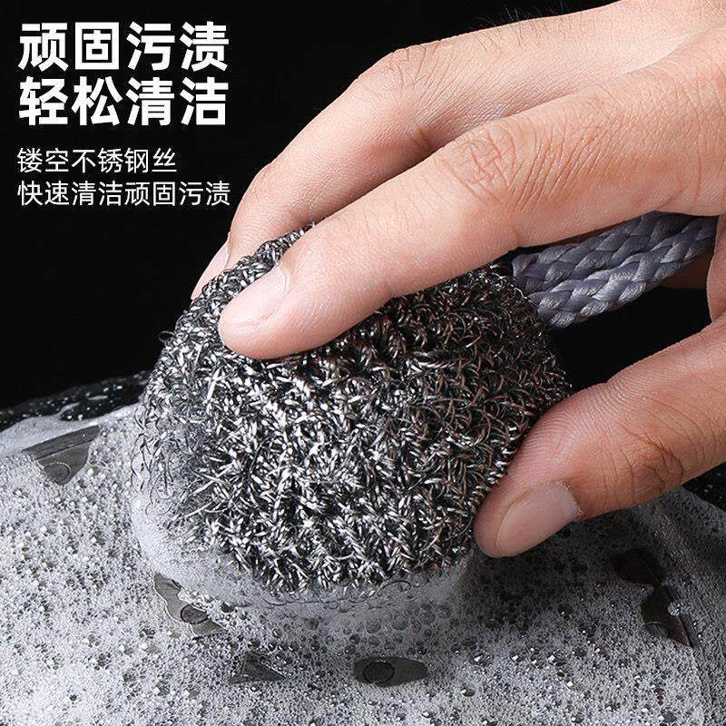 📚 钢丝球自带挂绳不锈钢清洁球不掉丝不生锈家用厨房刷铁锅洗碗神器