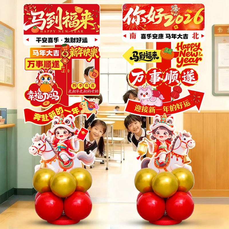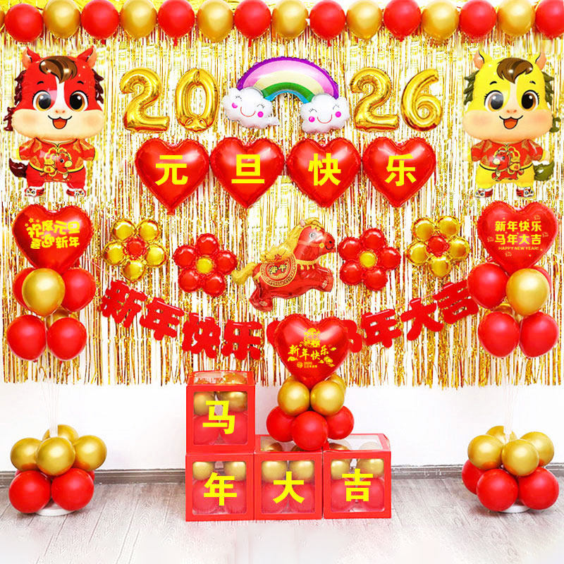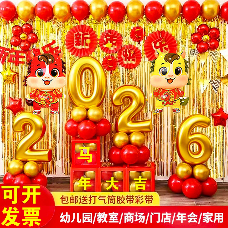 📚 2026新年元旦气球装饰商场学校公司晚会幼儿园新年教室布置背景墙