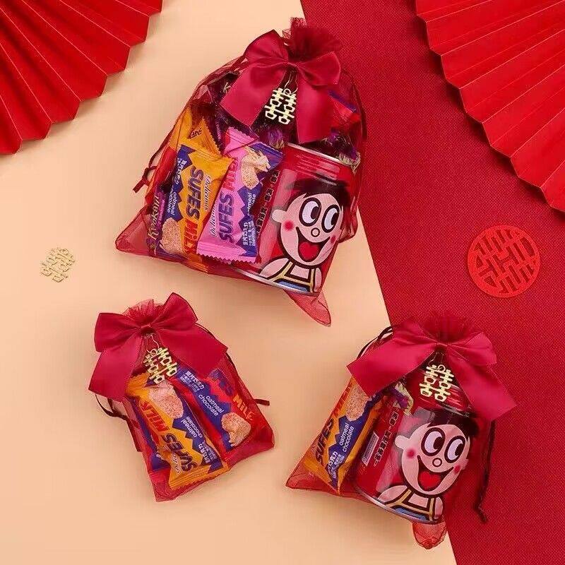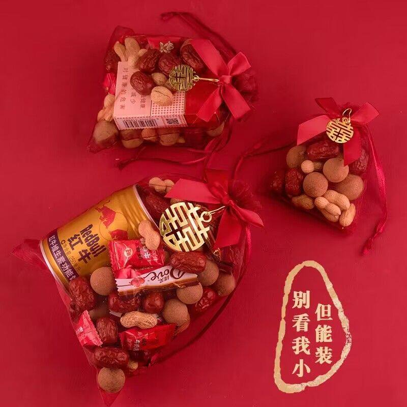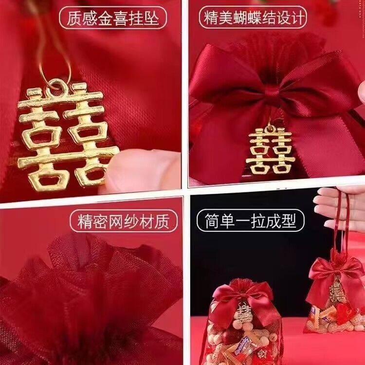 📚 2025喜糖袋子抽绳网纱袋婚礼喜糖果袋喜庆伴手礼蝴蝶结中式网红款