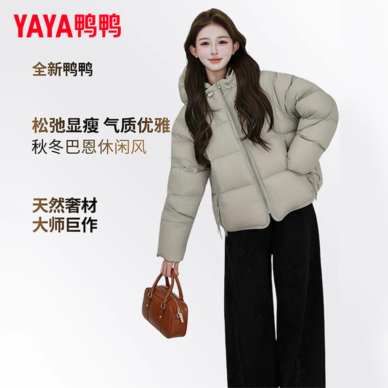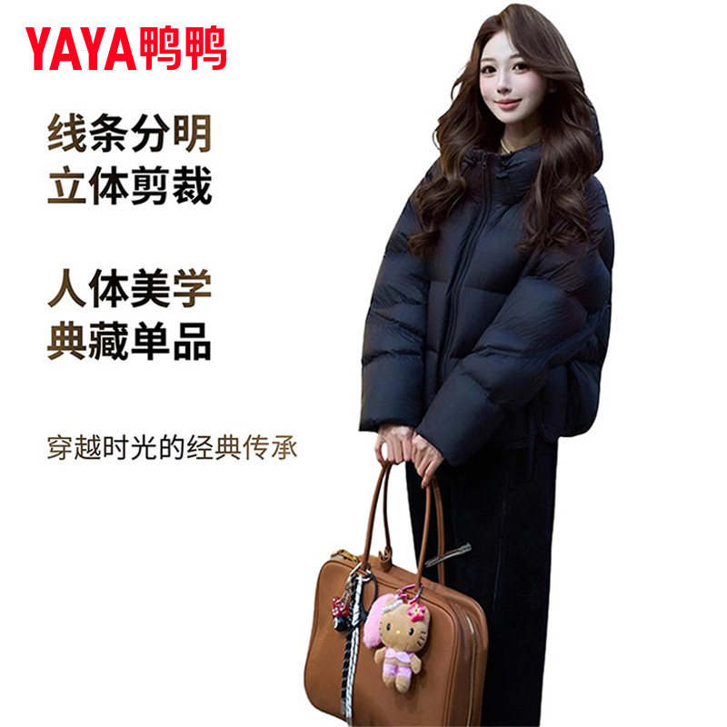 📚 鸭鸭羽绒服女冬2025新款短款时尚连帽宽松休闲设计感加厚保暖外套