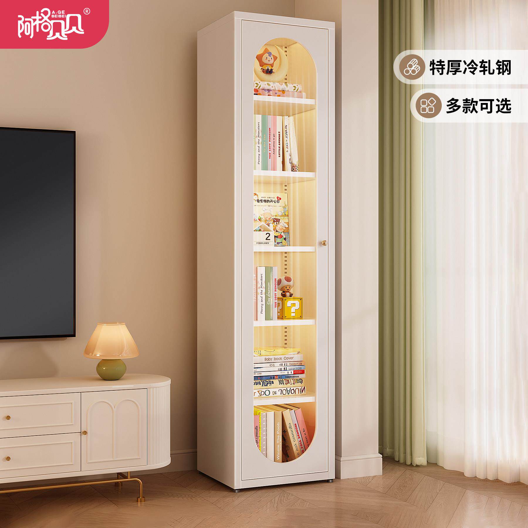 📚 阿格贝贝立柜客厅电视柜旁钢制书柜带玻璃门法式书柜置物柜展示柜