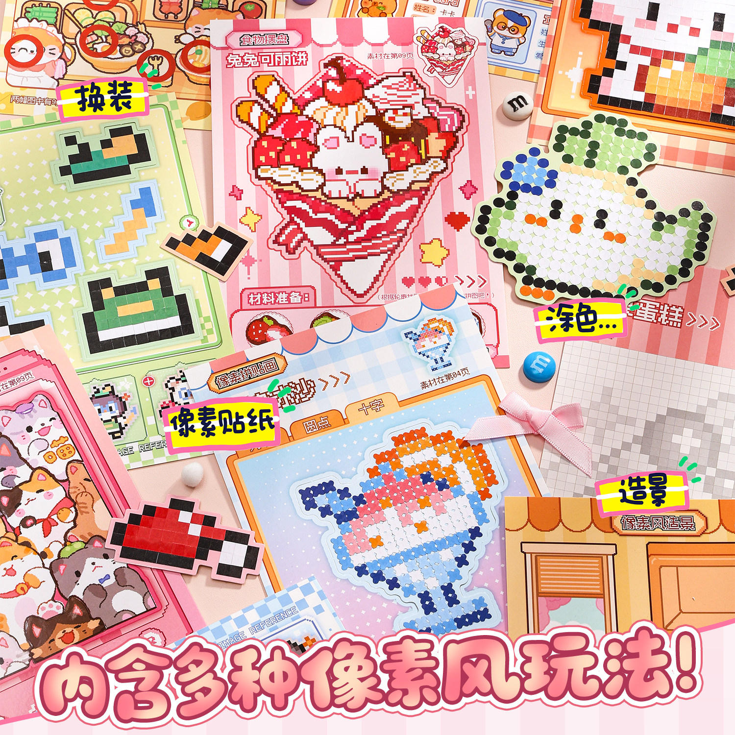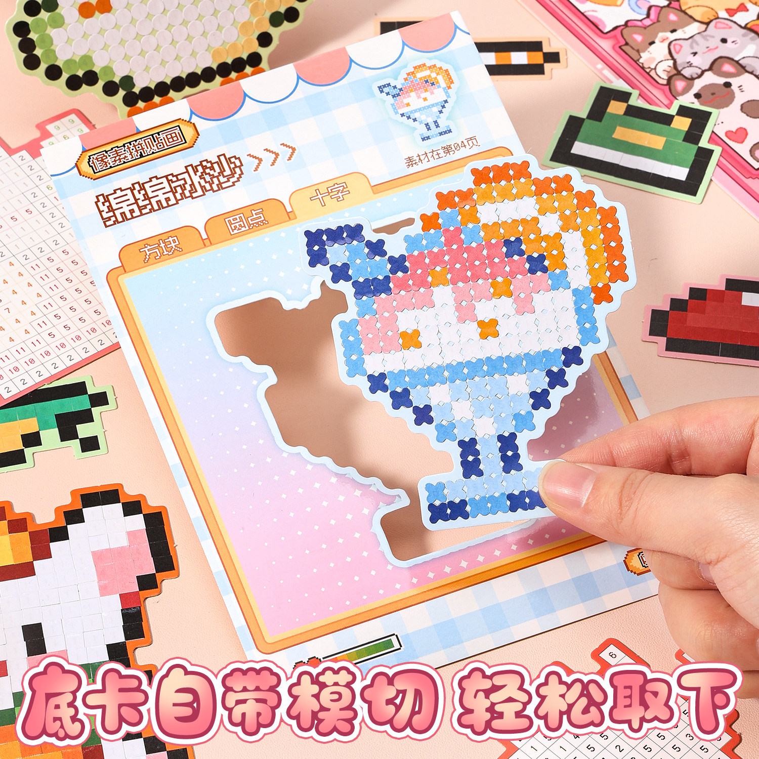 📚 咔巴熊拼豆贴纸本高颜值迷你像素风豆豆本少女心女孩咕卡素材安静书创意手工diy手账贴可爱卡通儿童益智贴画