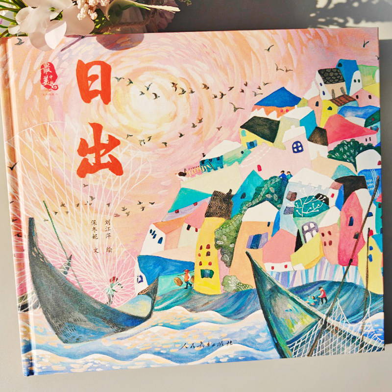 📚 日出绘本一年级下册美中国系列图画书人民教育出版社保冬妮诗歌渲染七彩斑斓阳光的色彩书谱写东海日出的壮美飞扬之歌80厘米超长书