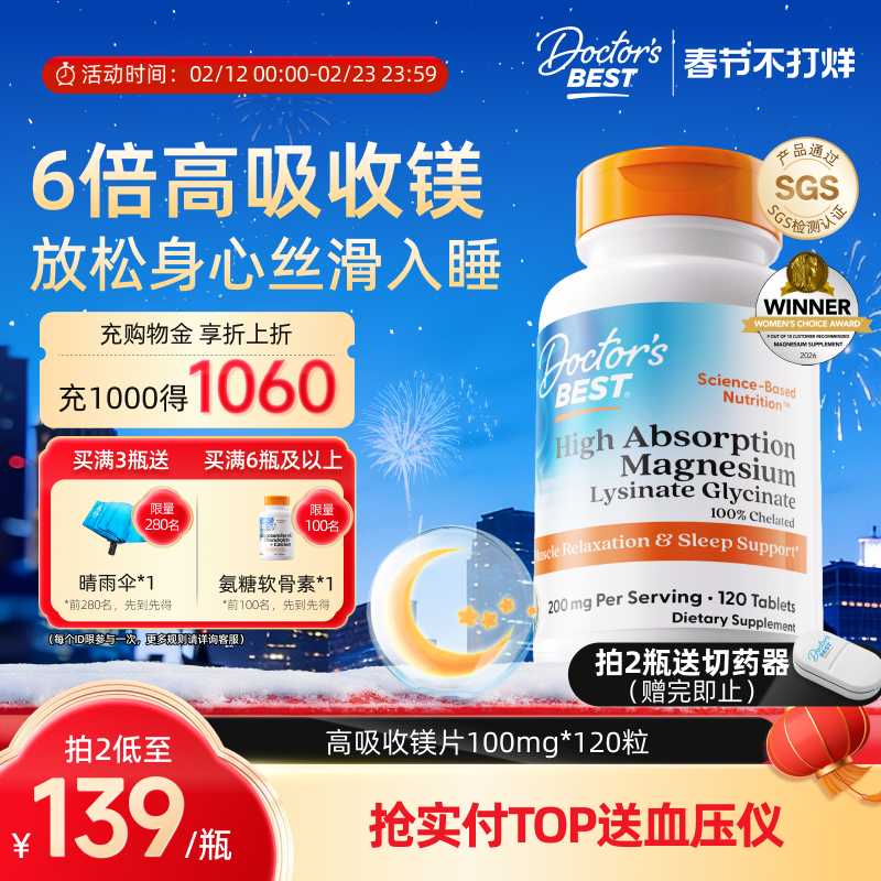 📚 Doctor'sBest多特倍斯赖氨酸甘氨酸镁片补充剂100mg120片