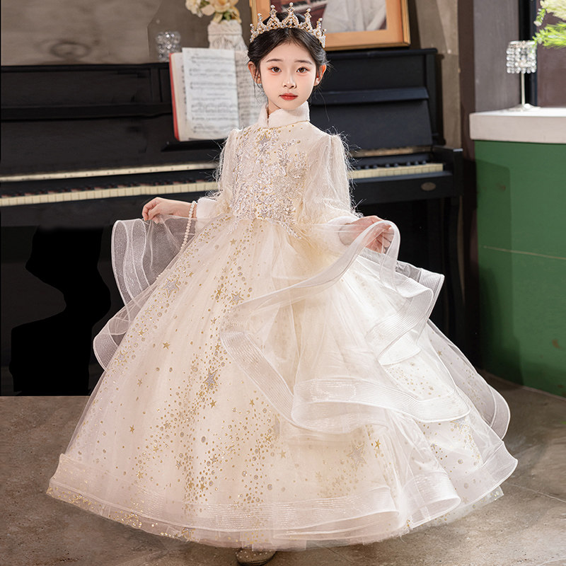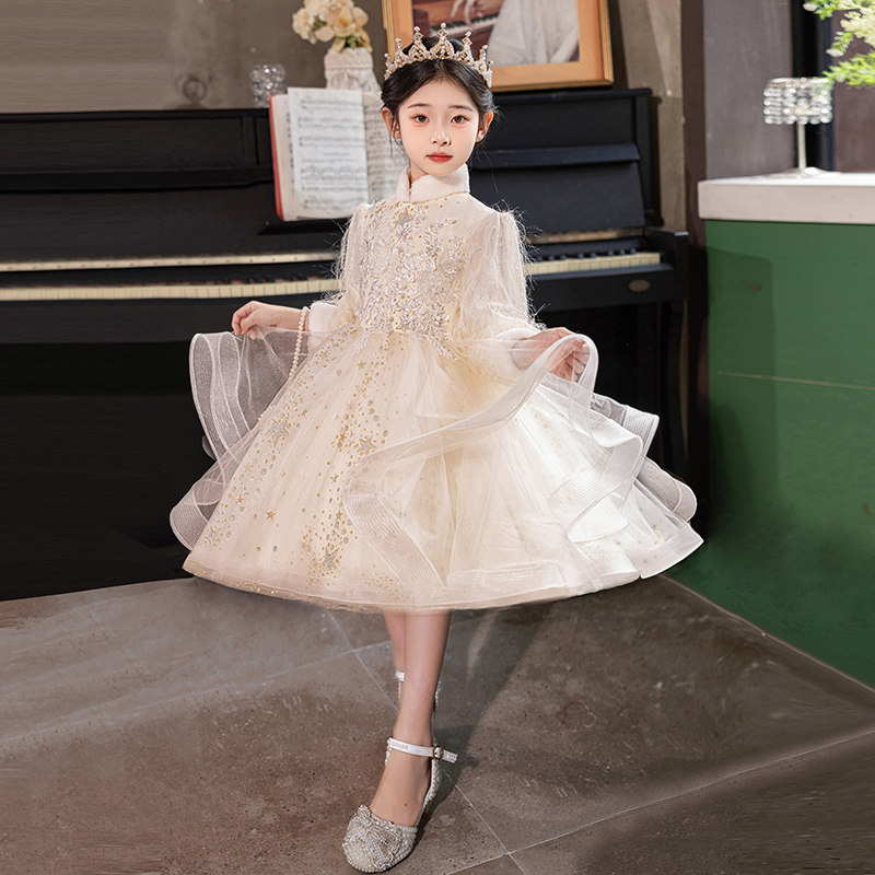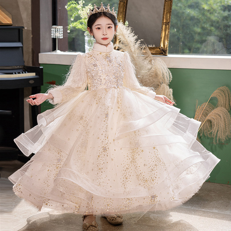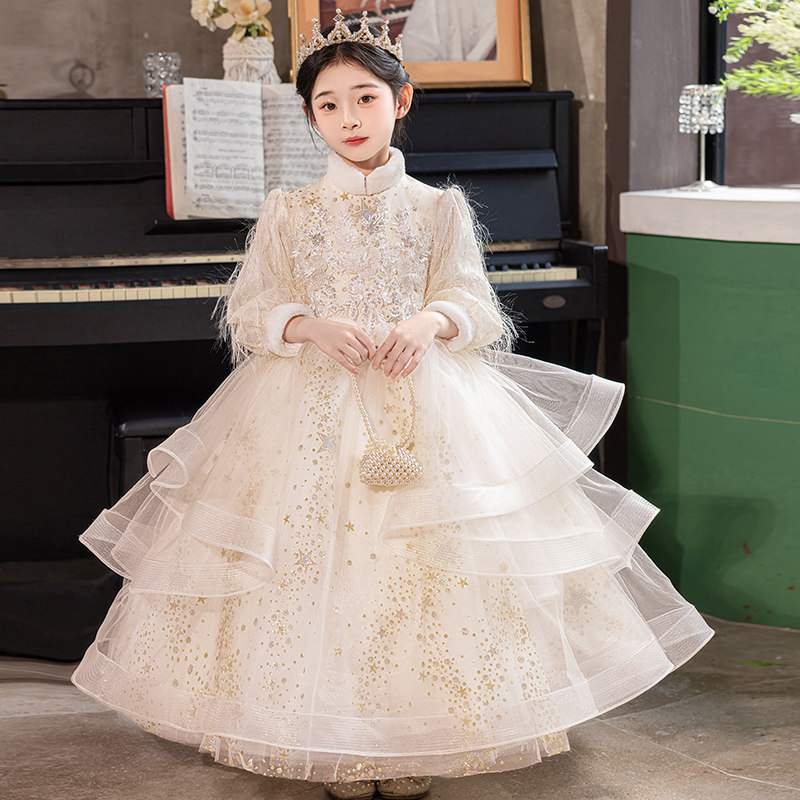 📚 女童礼服冬季儿童生日公主裙花童婚礼小女孩主持人高定演出服加绒