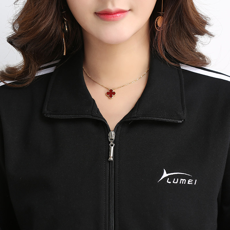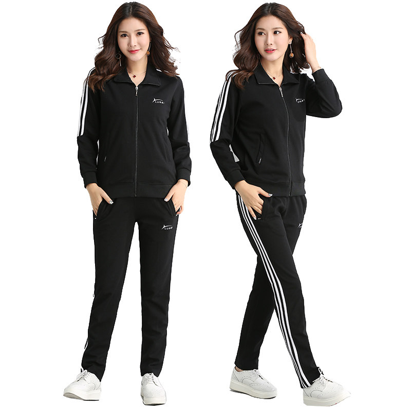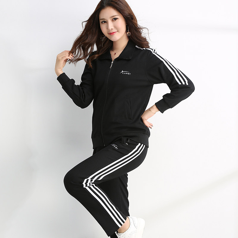 📚 鲁美运动套装女春秋三道杠运动服修身显瘦大码休闲长袖长裤两件套