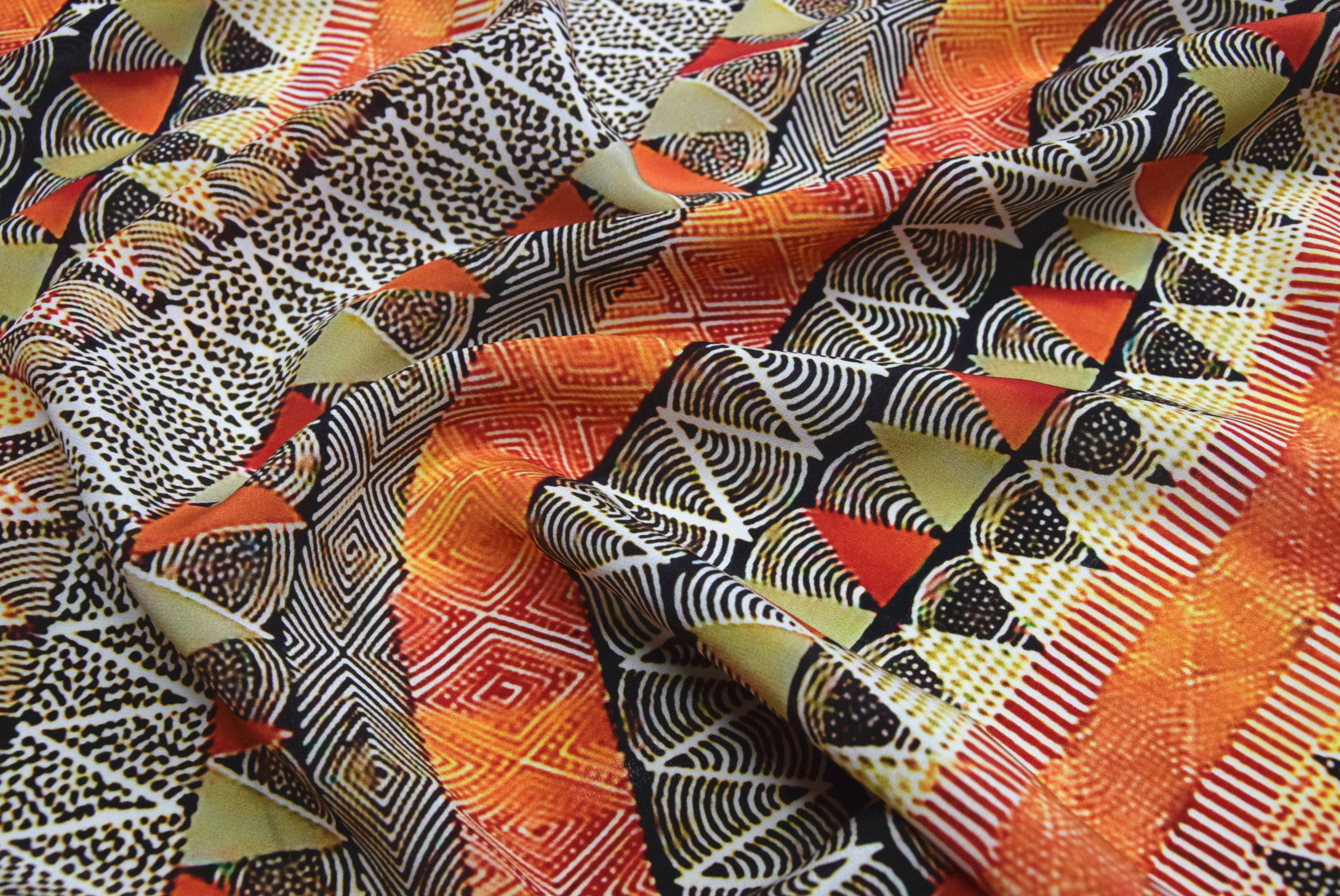 📚 03双绉黄色菱形格几何印花真丝连衣裙布料桑蚕丝绸衬衫套装面料女