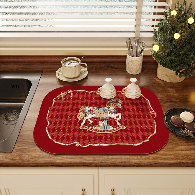 📚 塞拉斯蒂娅法式复古木马圣诞新年厨房台面沥水垫洗手台防滑吸水垫