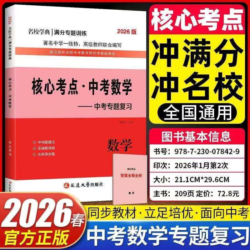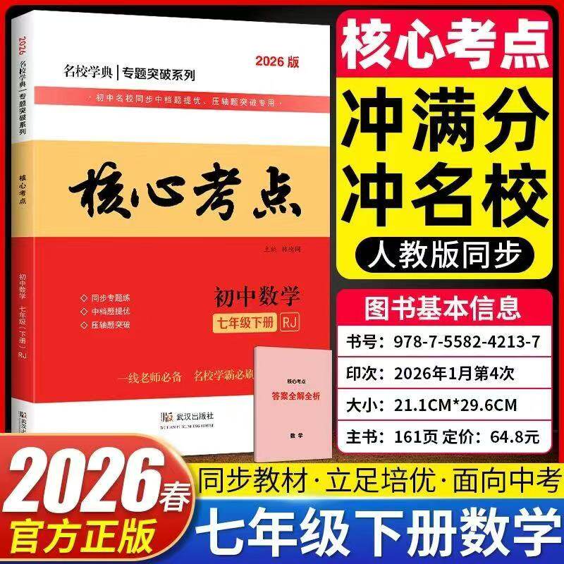 📚 2026新版核心考点7七年级8八年级9九年级上册下册数学人教版初中压轴题武汉名校学典专题突破训练七八九年级初一练习册送答案