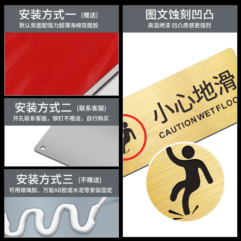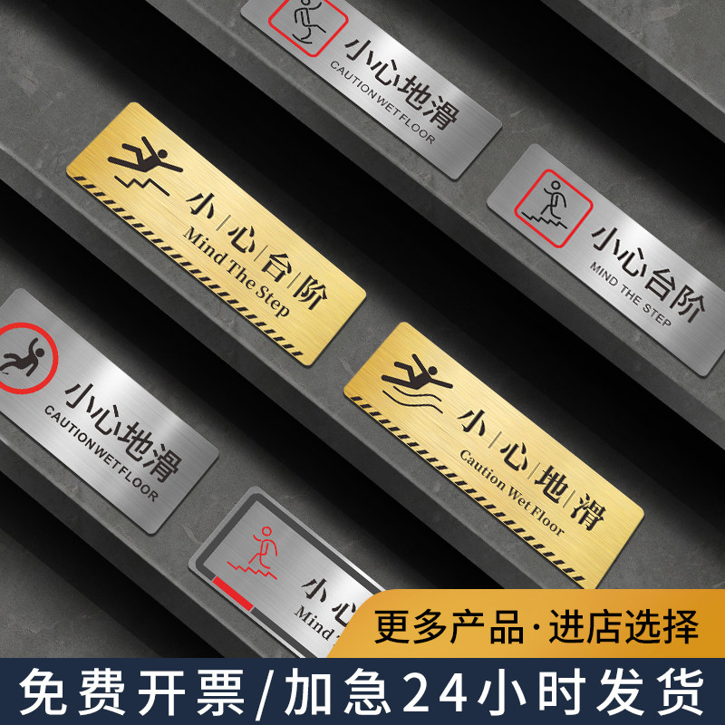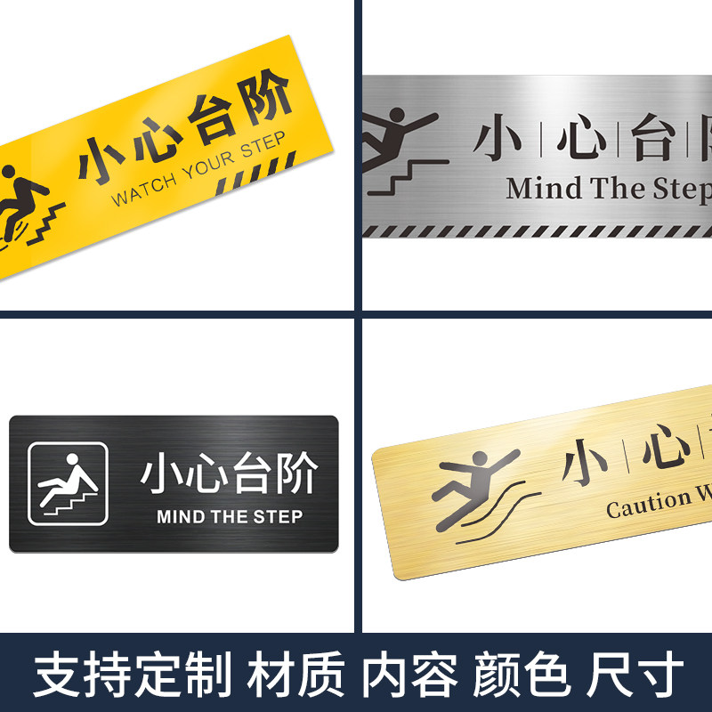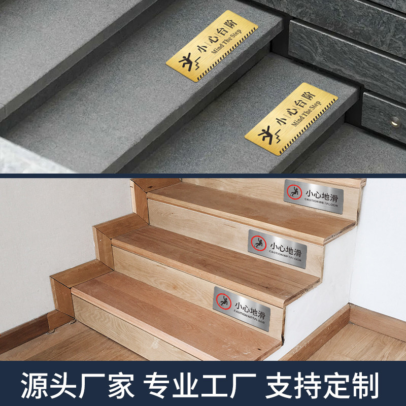 📚 304不锈钢小心台阶地滑地贴商场物业台阶温馨提示牌防水防滑耐磨标识牌楼梯注意安全注意脚下警示指示牌定制