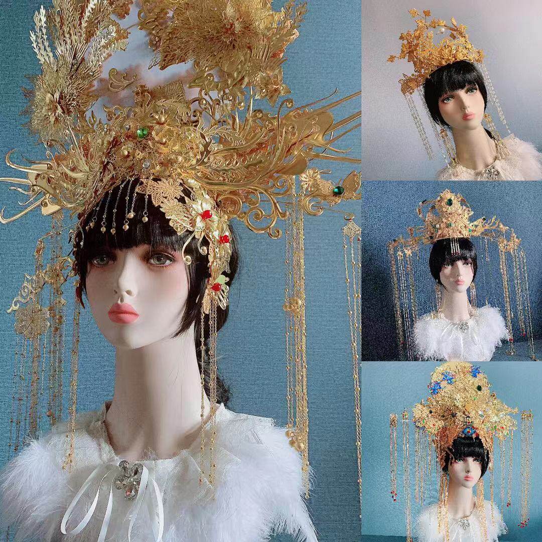 📚 新娘头饰古装国风流苏发饰新娘中式头饰凤冠皇冠秀禾饰品影楼拍照