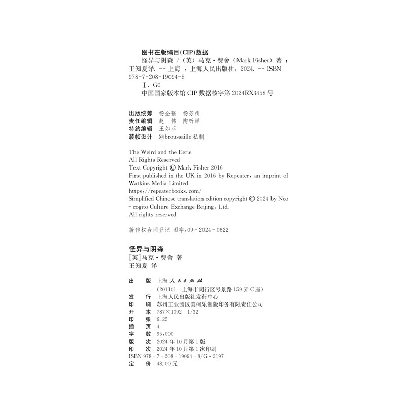 📚 怪异与阴森(英)马克.费舍哲学总论上海人民出版社凤凰新华书店旗舰店