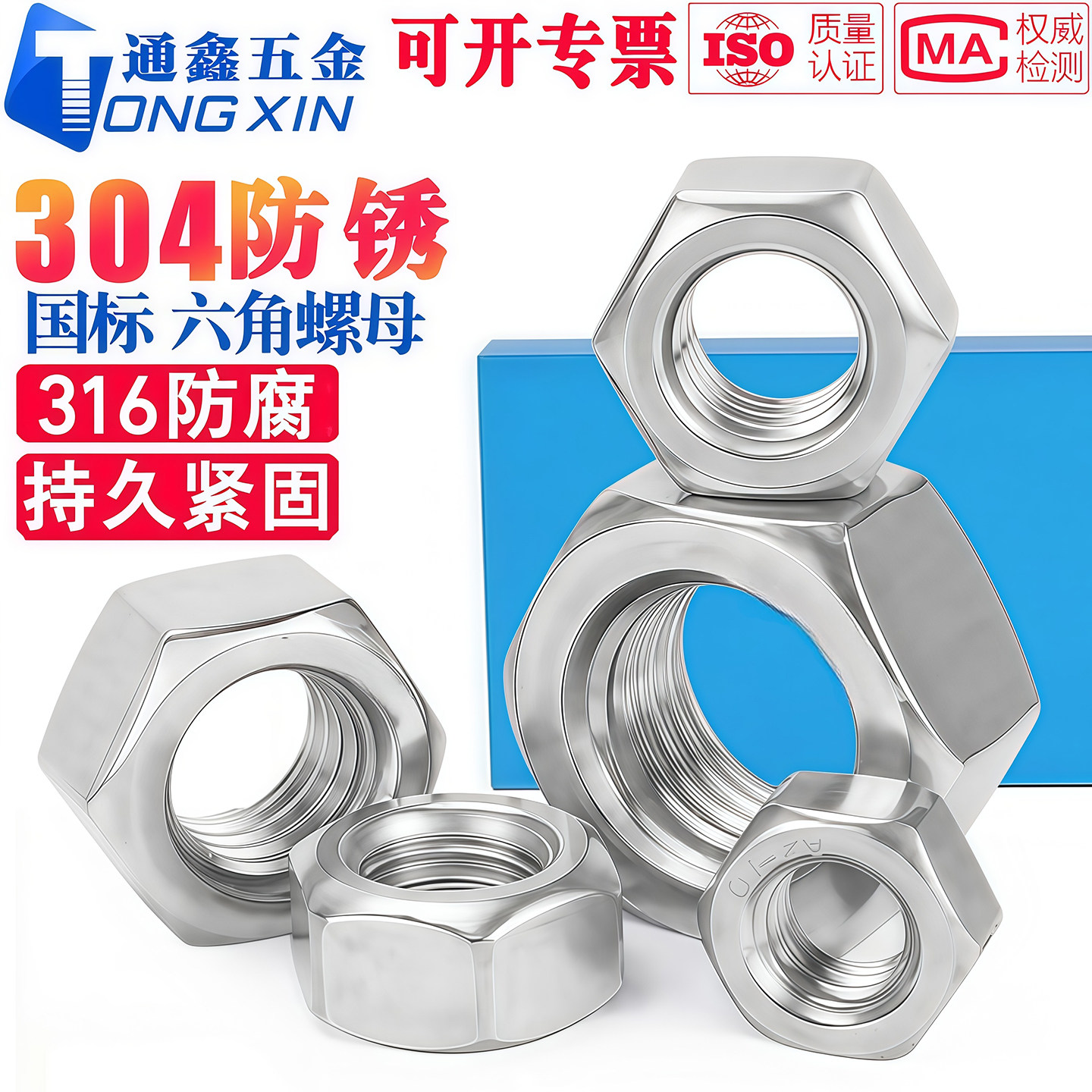 📚 304/316不锈钢六角螺母螺栓螺丝帽 DIN934 M1M2M3M4M5M6M8M10-M68