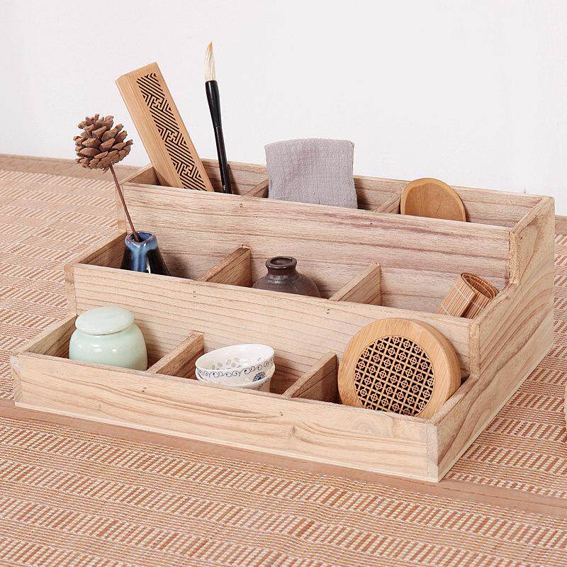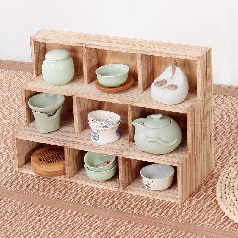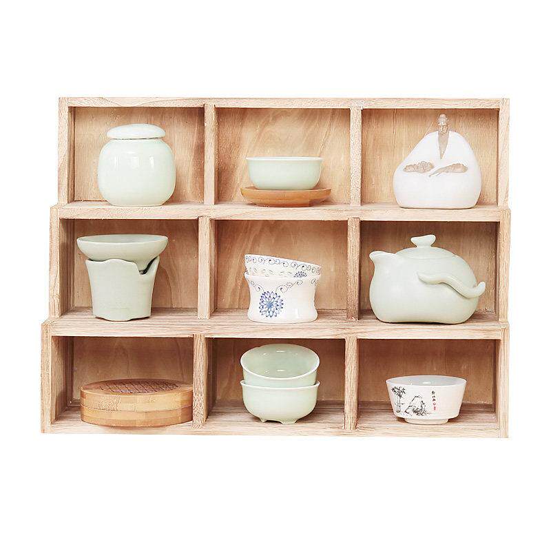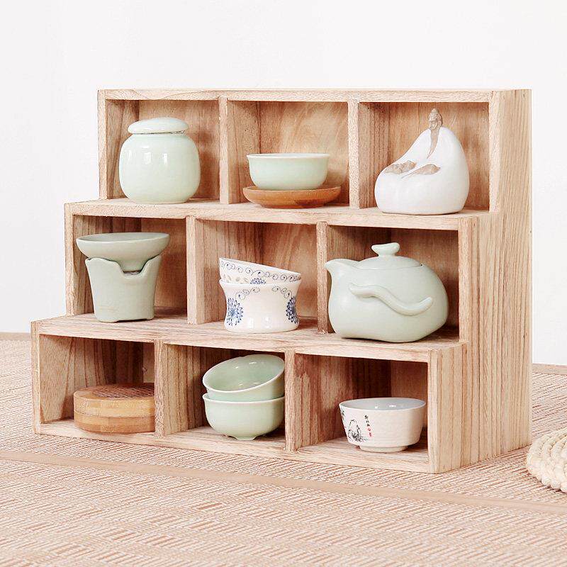 📚 实木置物架博古架梯形九宫格子桌面收纳盒展示架柜子壁挂摆件9格