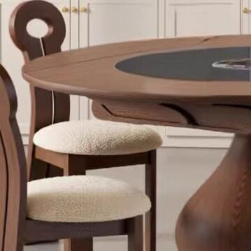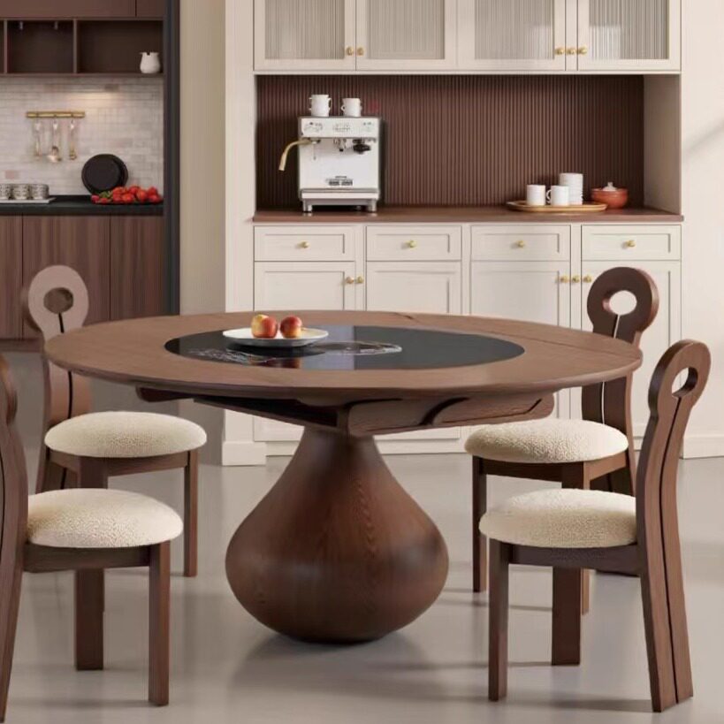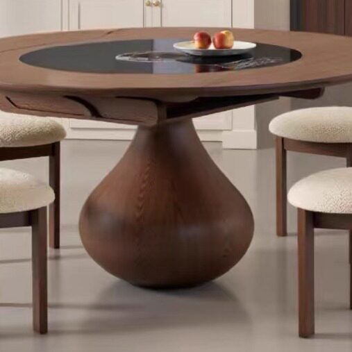 📚 宋式美学黑胡桃木餐桌设计师同款实木圆桌酒店高端定制餐厅饭桌