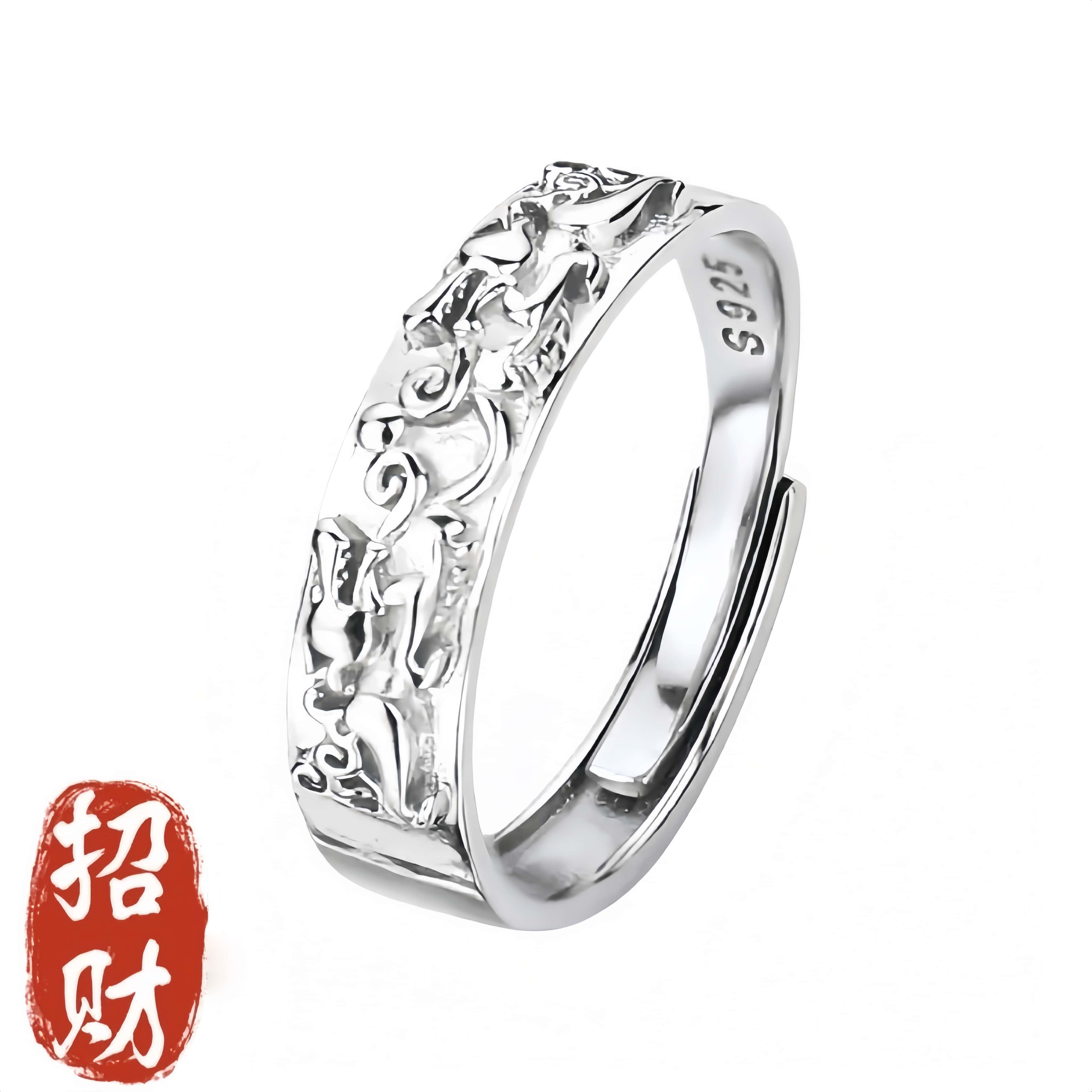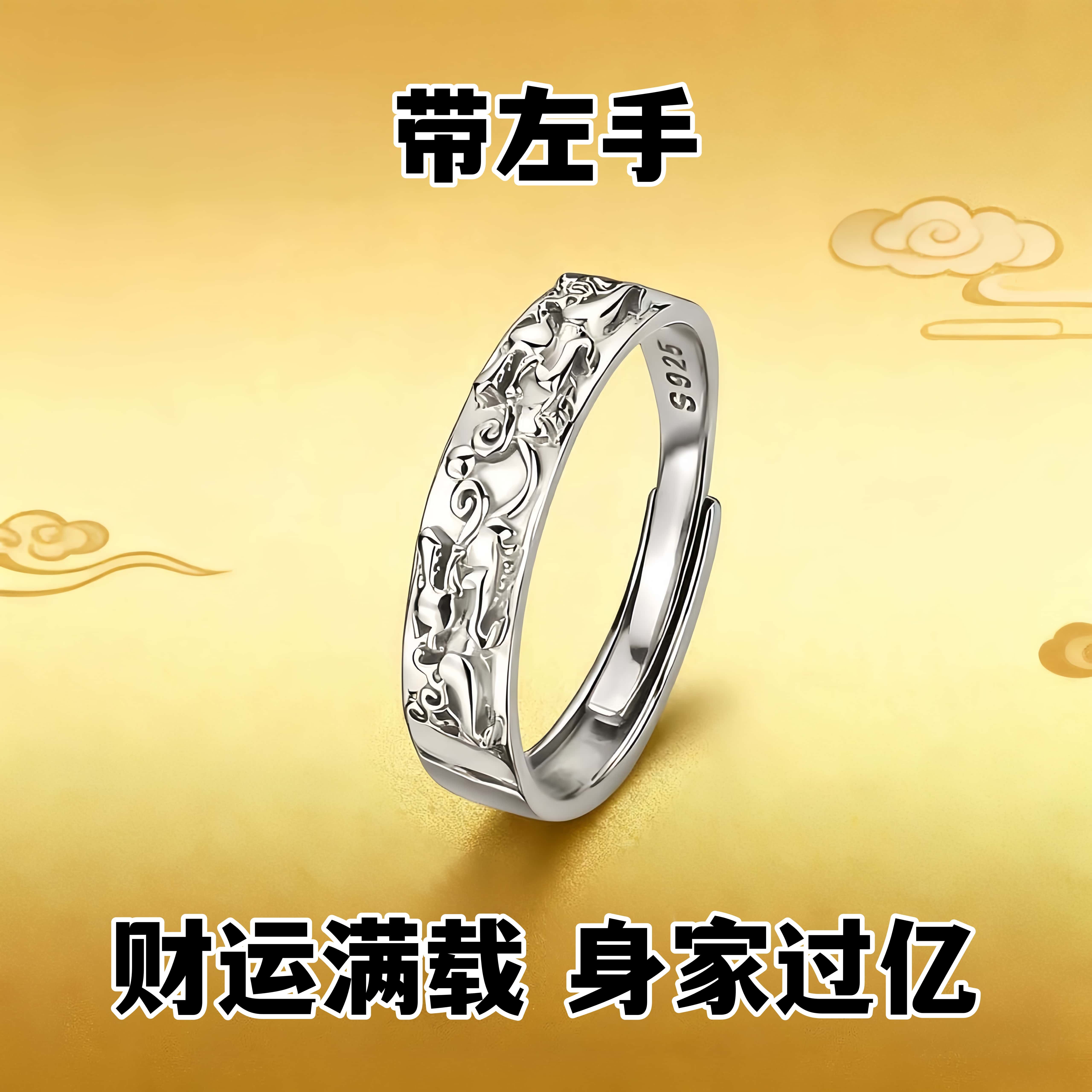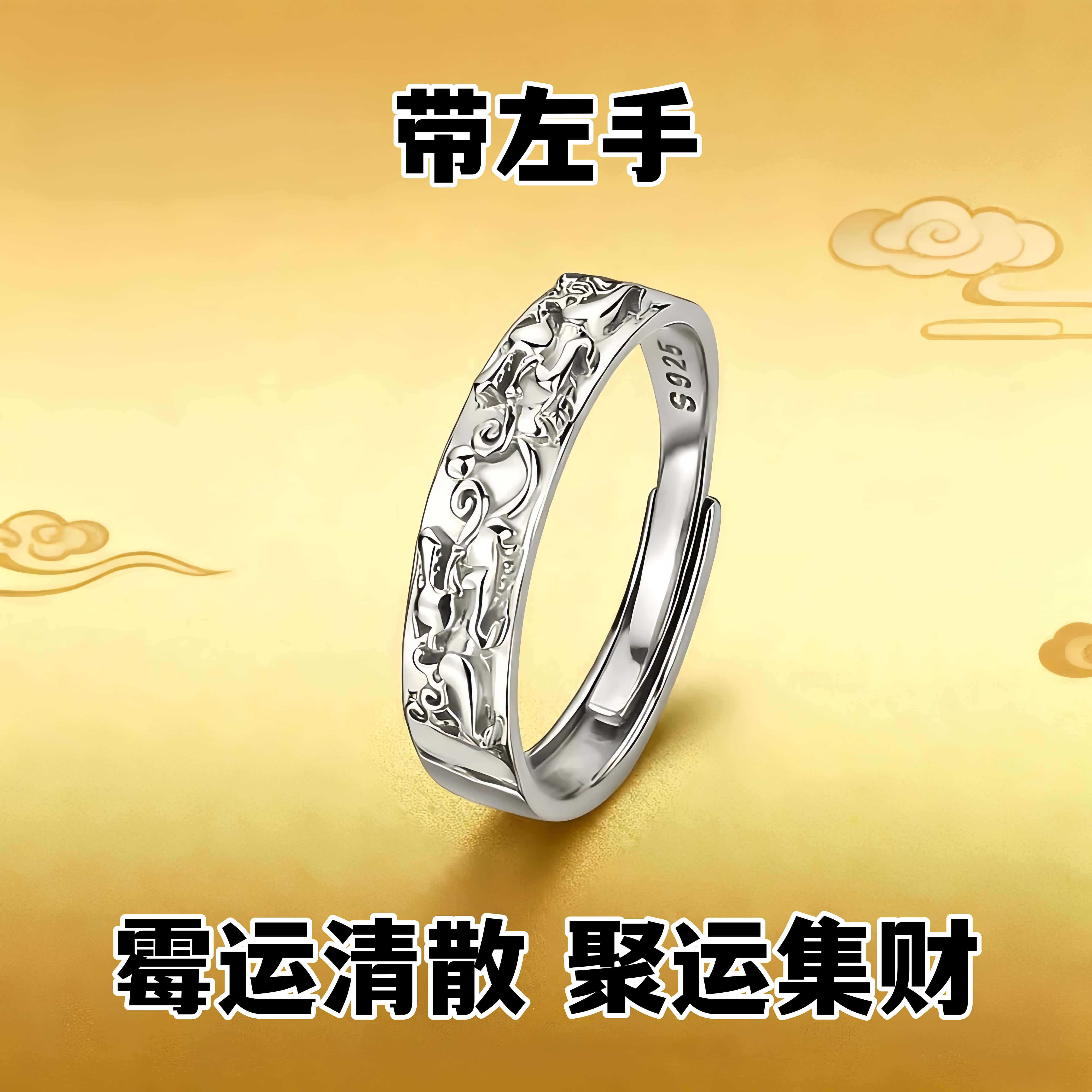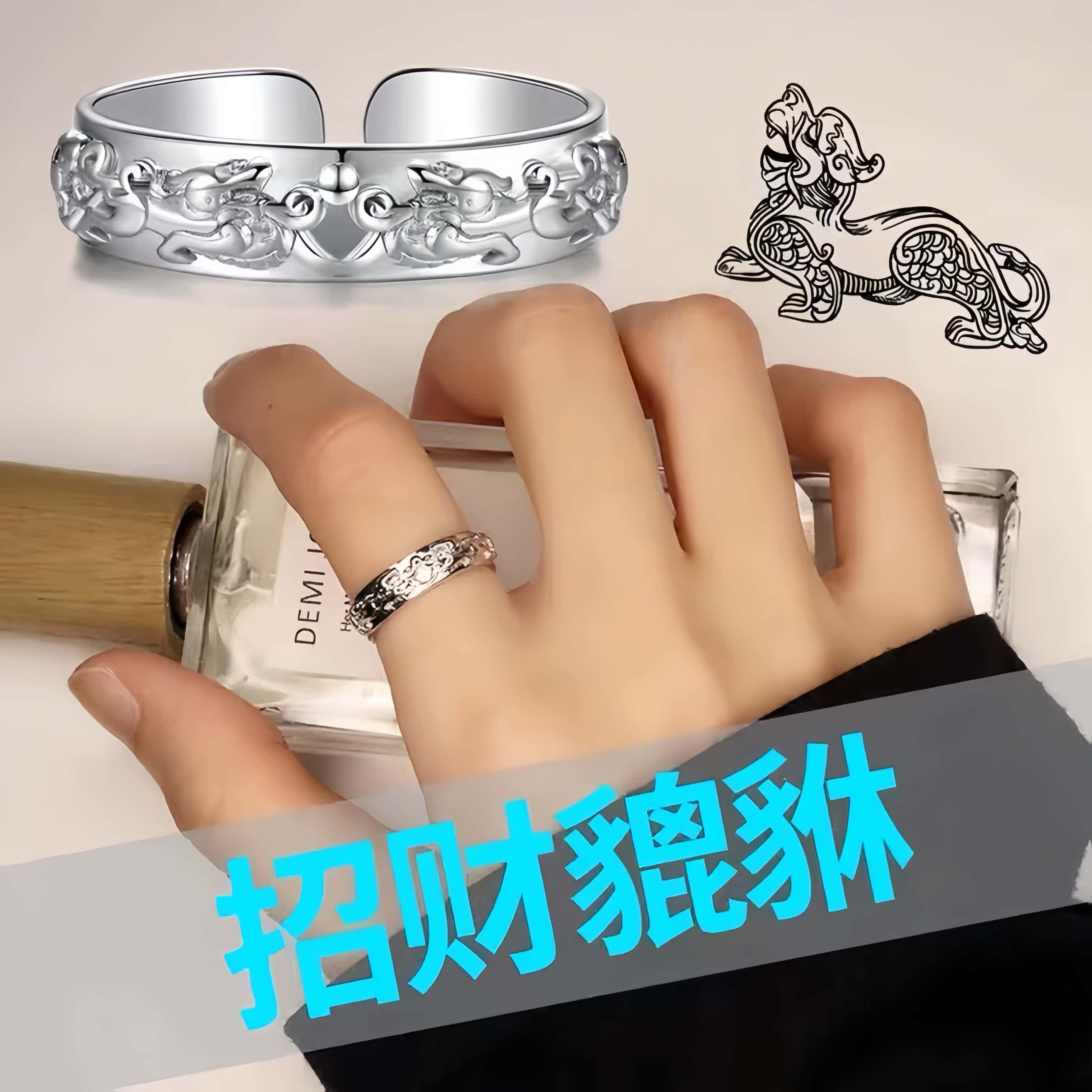 📚 【戴左手很顺】真实有效貔貅招财转运戒指男女开口指环复古可调节