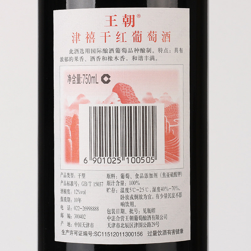 📚 粉丝专享特价试饮 王朝官方旗舰店DYNASTY津禧干红葡萄酒750ml/瓶