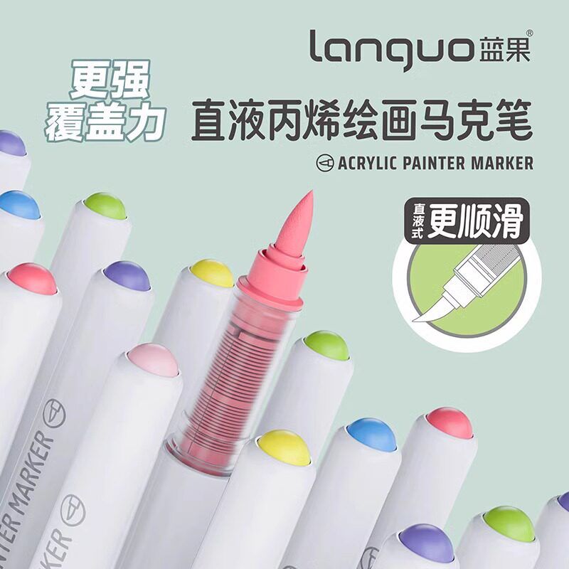 📚 蓝果直液式丙烯马克笔软头全套171色新一代绘画专用48/81色学生肤色不透色可叠色涂鸦手账水彩笔画画颜料画笔
