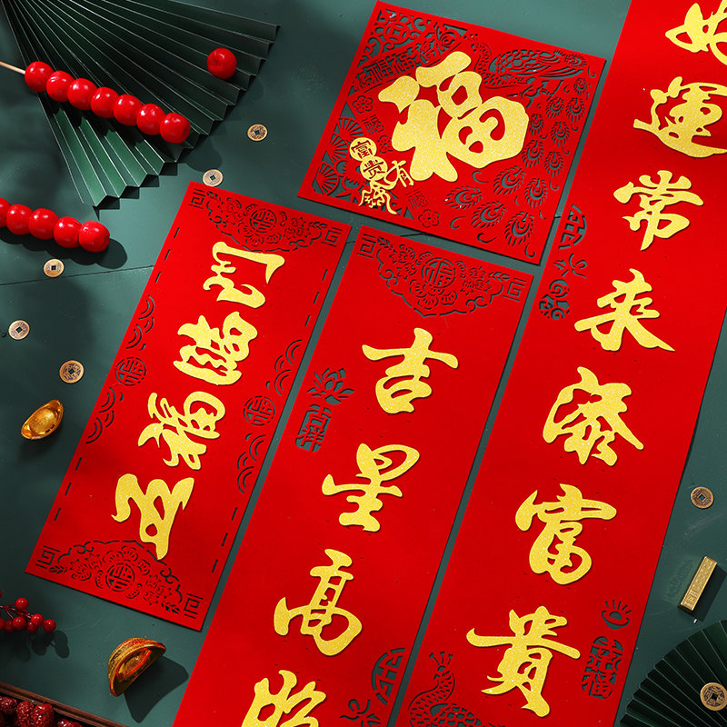 📚 2024龙年植绒烫金黑字磁吸对联春节新年春联过年大门门联背胶自粘