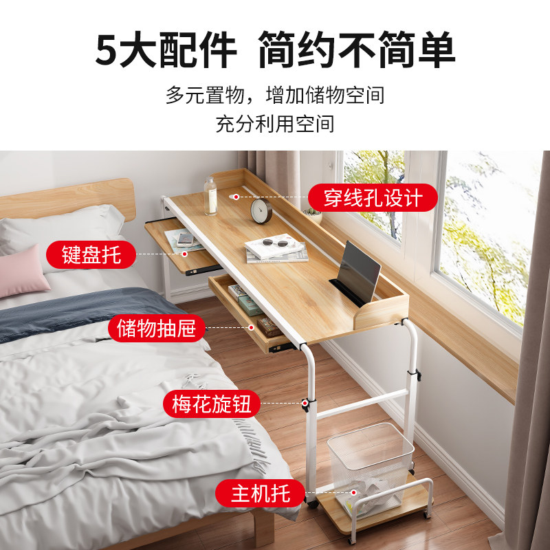 📚 卧室懒台式电脑桌升降带抽屉桌子长条长方形靠墙窄跨床桌