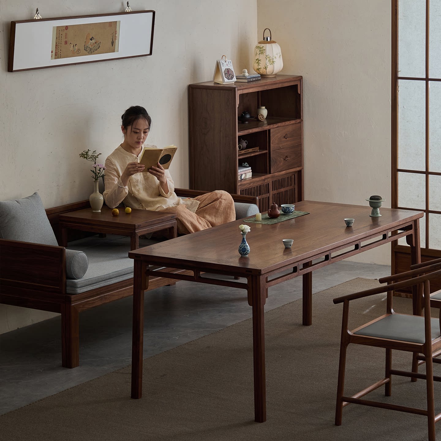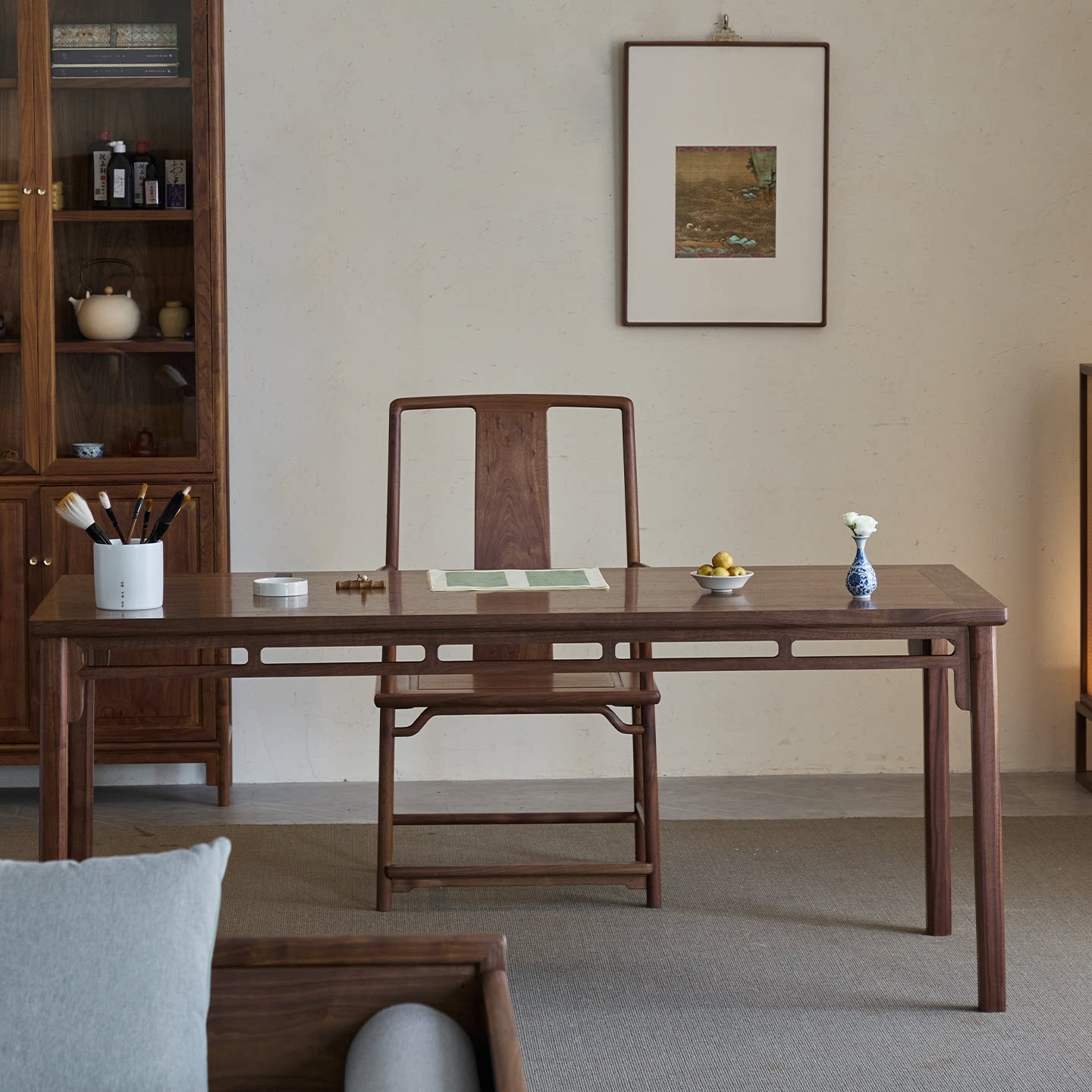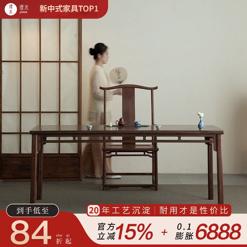📚 璞木新中式黑胡桃木书桌实木茶桌仿古禅意大画案书房书法桌书画桌