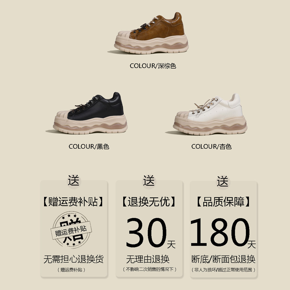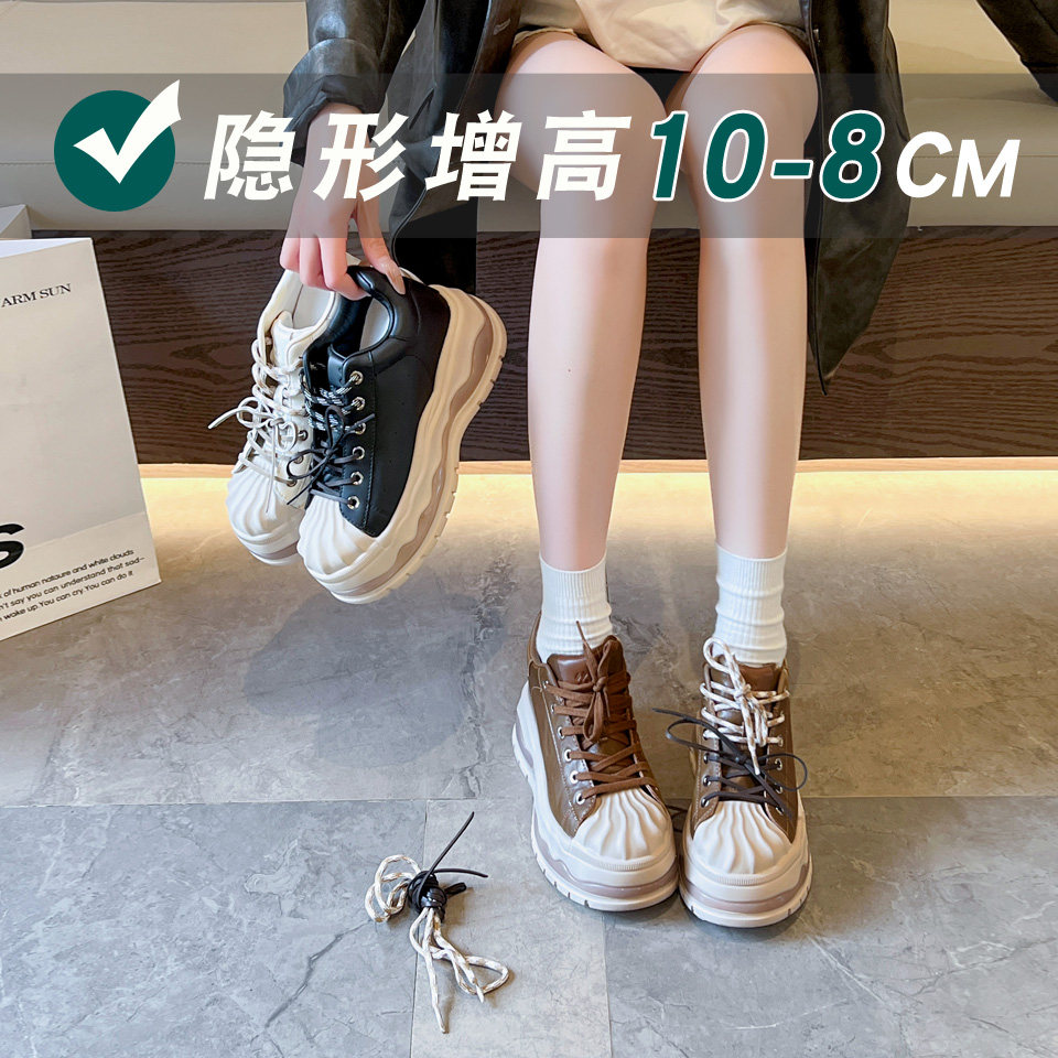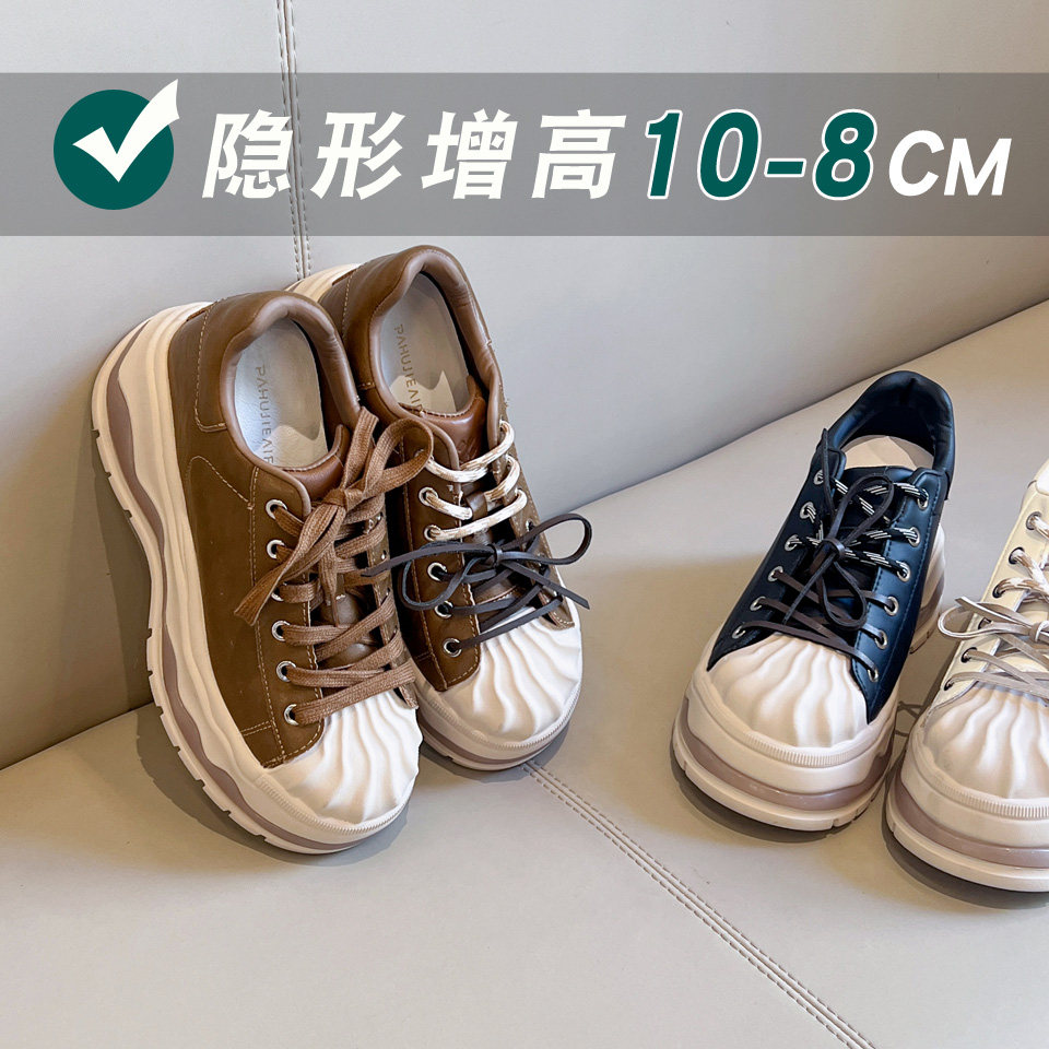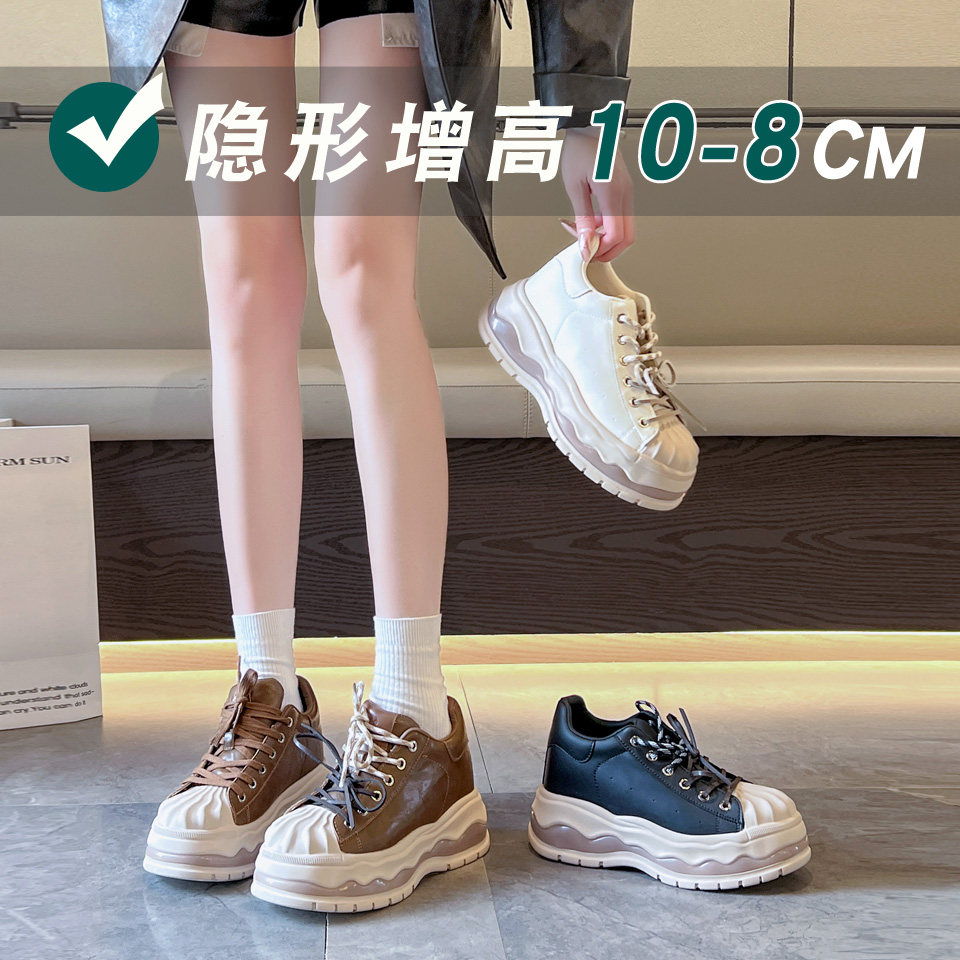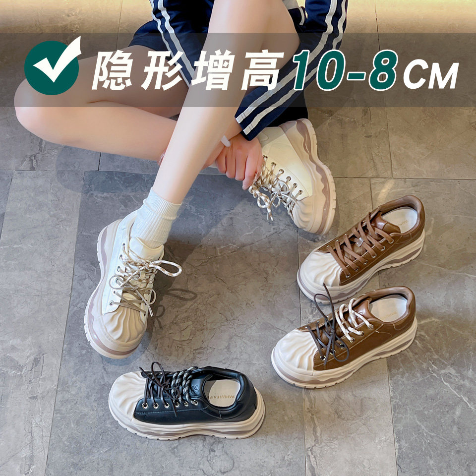 📚 8-10CM小个子内增高休闲鞋女显脚小2026春季真牛皮百搭贝壳头板鞋