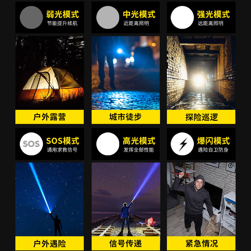 📚 强光照射灯可充电式户外应急超亮激光远射超长续航氙气变焦手电筒