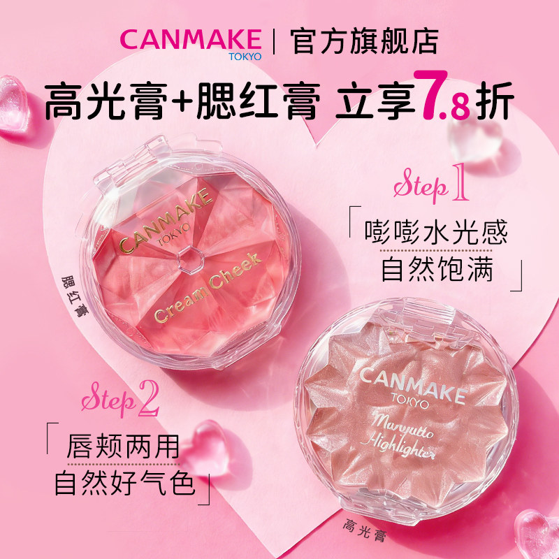 📚 【套装】canmake/井田梦幻胭脂膏+水润高光膏 高光粉腮红膏粉两用