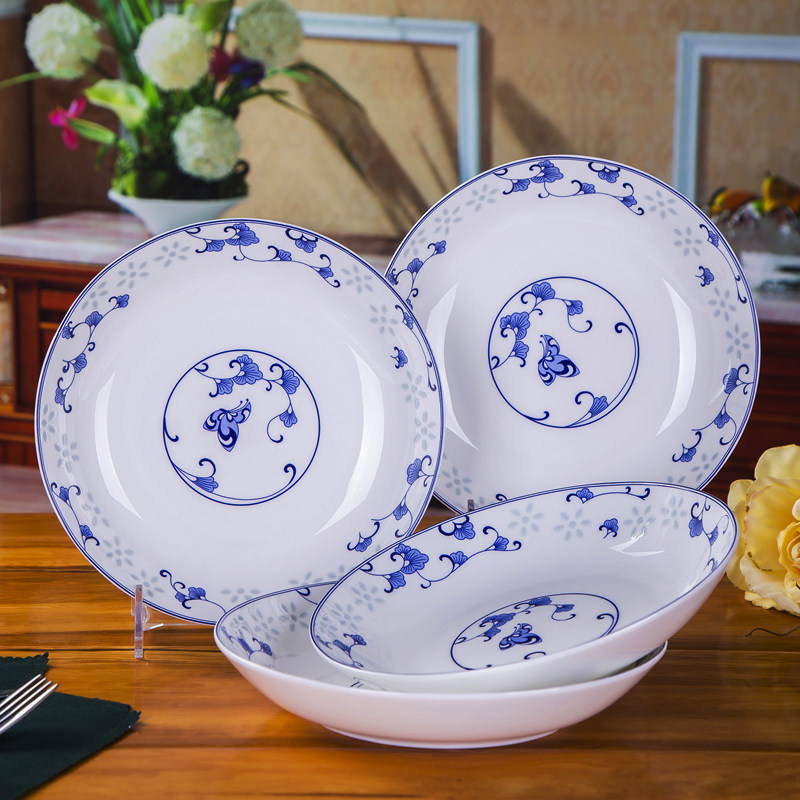 📚 景德镇陶瓷餐具青花骨质瓷圆形深盘8英寸创意家用菜盘子汤碟