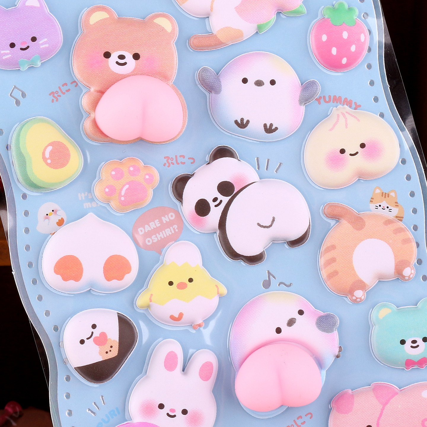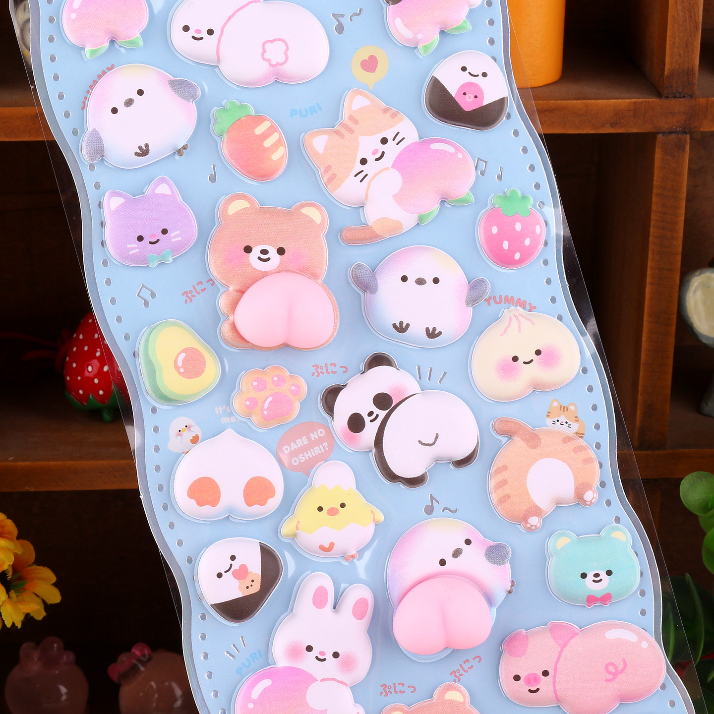📚 日系软萌屁屁贴立体卡通贴画sticker可爱小动物贴纸水蜜桃屁屁贴