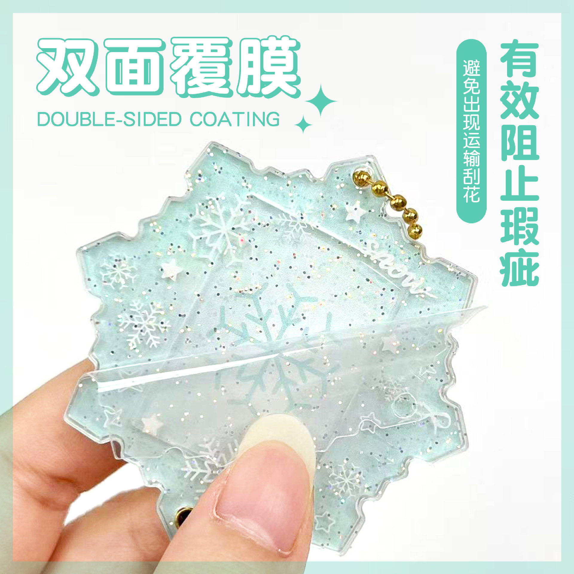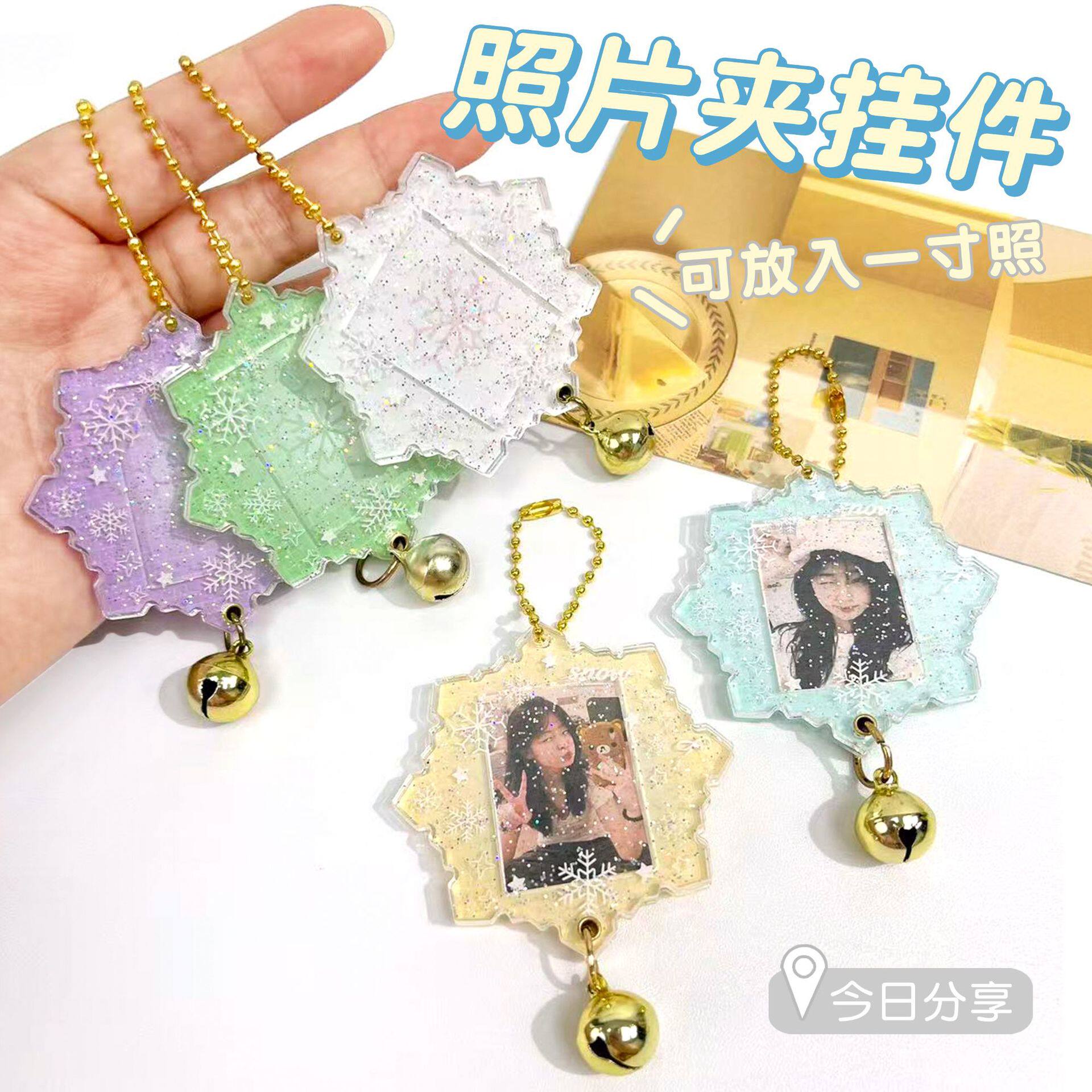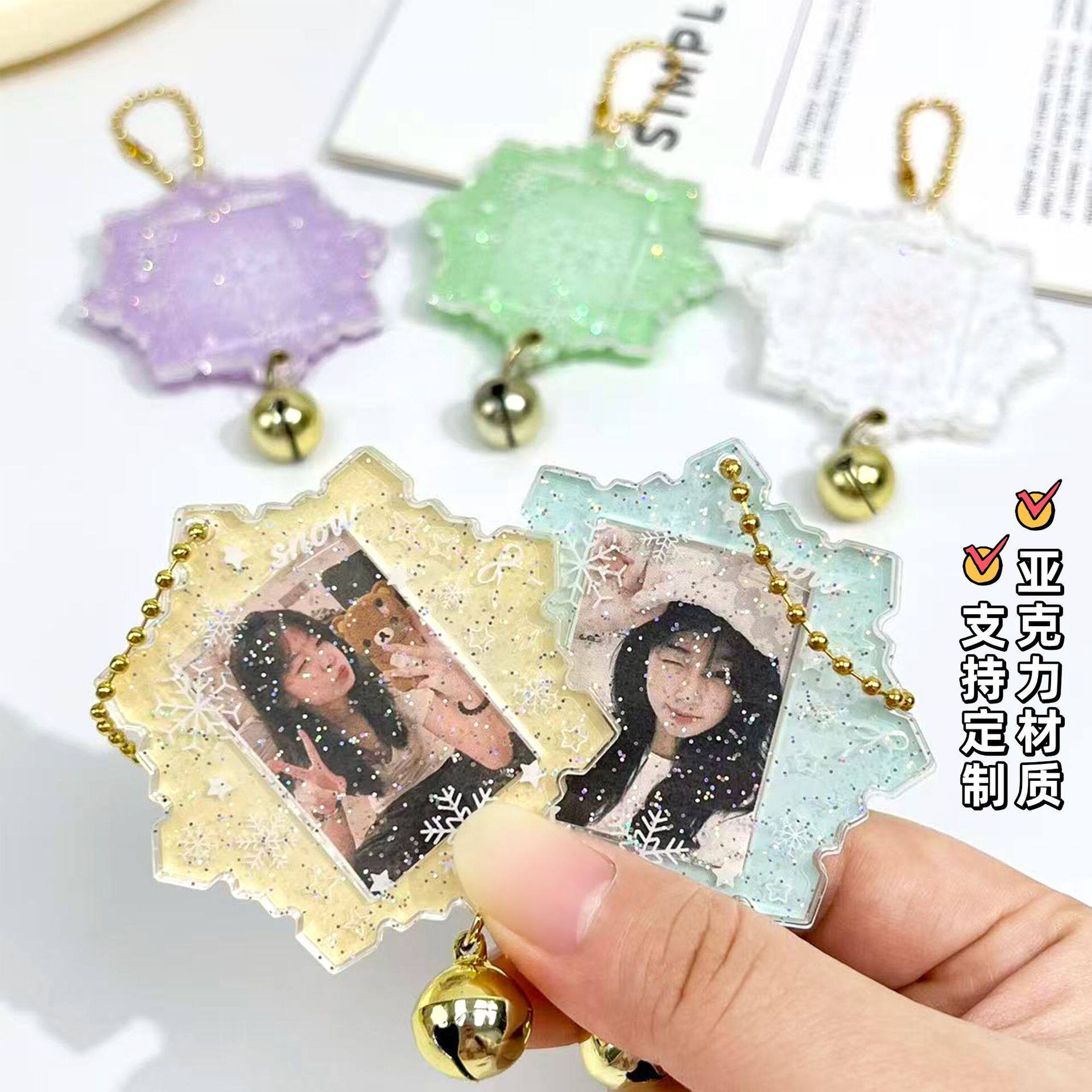 📚 一寸相片亚克力相框钥匙扣创意雪花系列学生可放照片小卡包挂件