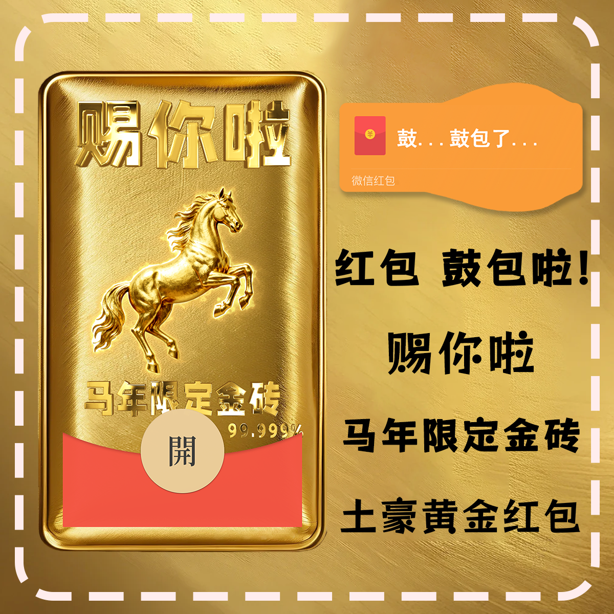 📚 鼓包啦马年金砖微信红包封面序列动态音乐暴富vx春节2026新年红包