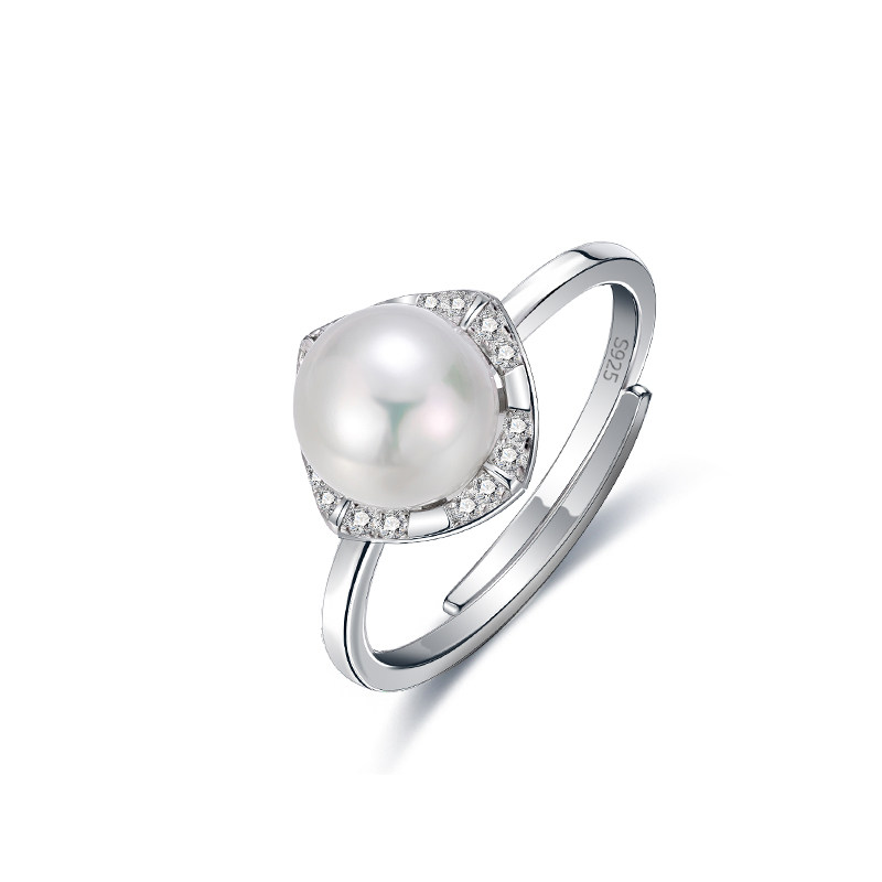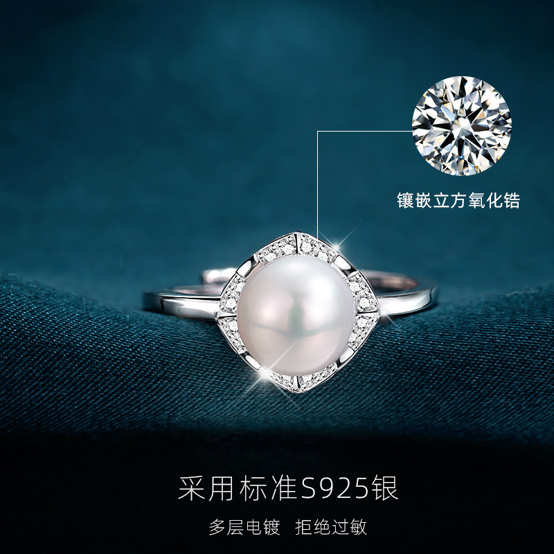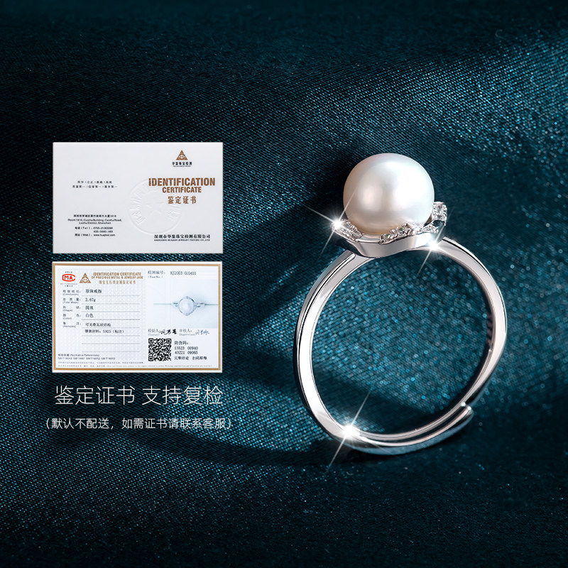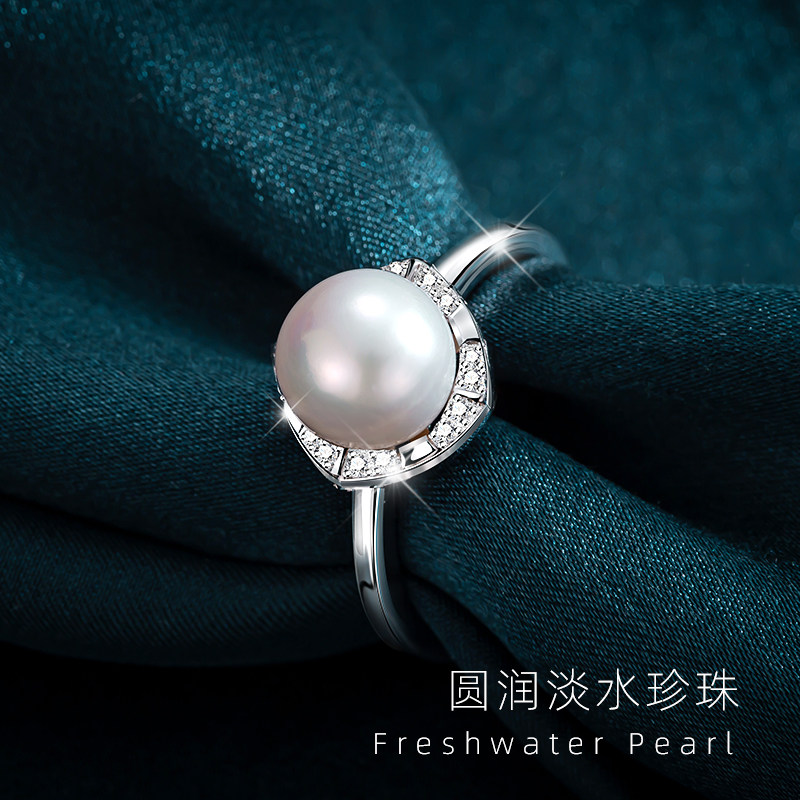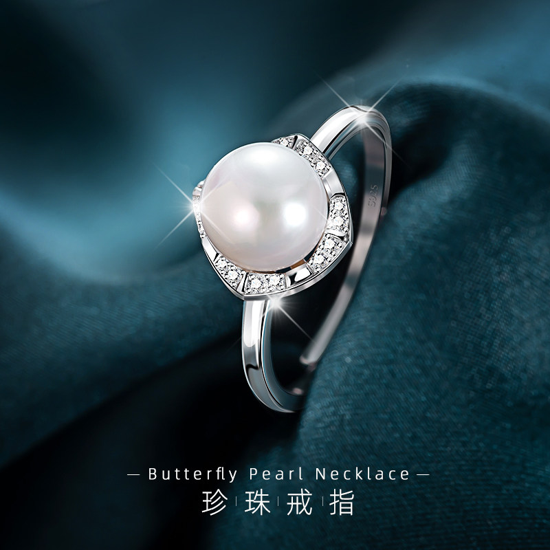 📚 天然淡水真珍珠纯银戒指女开口小众设计妈妈款单颗白色珍珠银戒指
