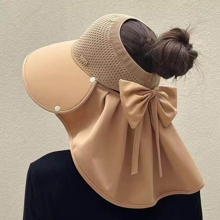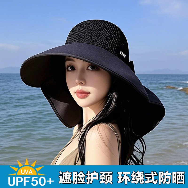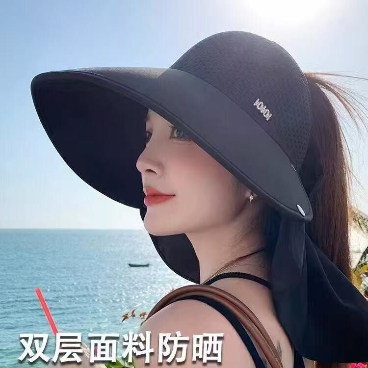 📚 大帽檐披肩防晒帽女遮脸防紫外线太阳帽可扎马尾半空顶护颈遮阳帽